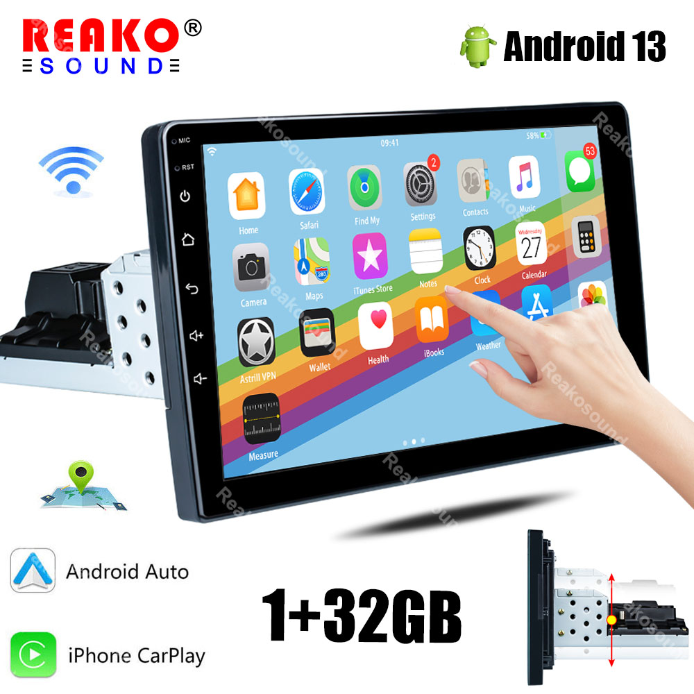 Single 1 DIN 9" Android 13 Apple CarPlay Car Stereo Radio GPS WIFI FM Head Unit