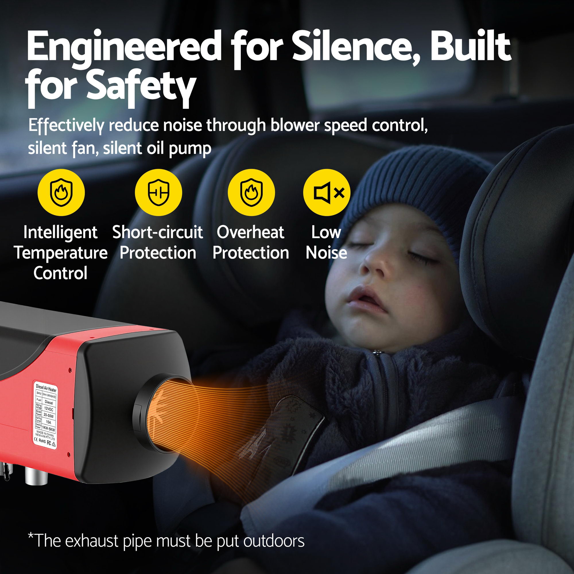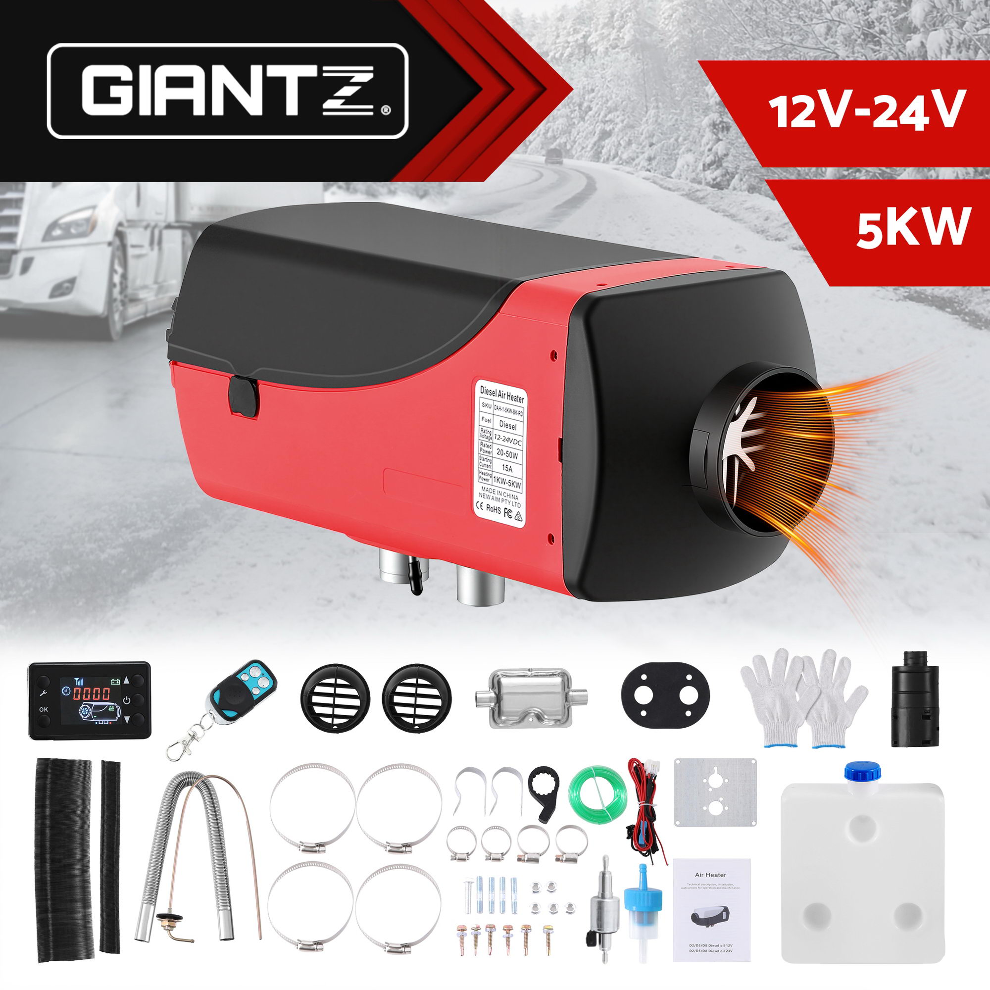 For fast and efficient heating on the go, the Giantz 5KW Portable Diesel Air Heater is a fantastic climate control solution that suits a wide variety of vehicles including caravans, motorhomes, trucks, camping trailers, buses, boats, machinery and more. With its low-noise operation, you can enjoy a peaceful environment while staying warm. The heater features a large 8L fuel tank, ensuring long-lasting heating without the need for frequent refills. Designed with energy-saving oil pump technology, this heater boasts low fuel consumption while providing a high heat output. The LCD monitor control allows for easy temperature adjustments, while the 30-metre long-distance remote control offers convenient heating from a distance. Compact and easy to install, this versatile heater will help you stay cosy and comfortable wherever you go.