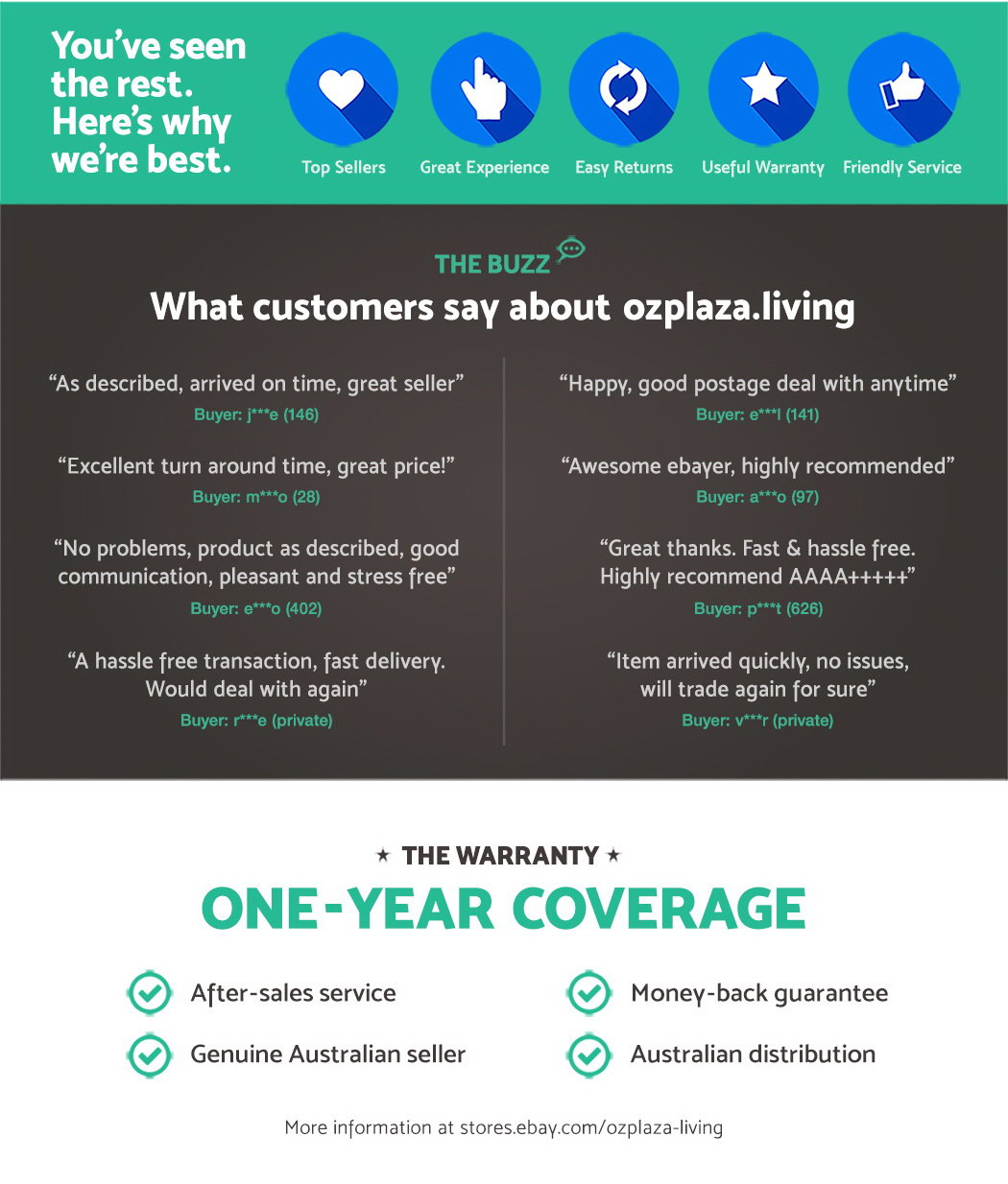 For your peace of mind, this product comes with a 1 year-year warranty. We value our customers and wish to make your purchase experience as enjoyable as possible. If something goes wrong with your product, please do not hesitate to contact us for assistance. Please CLICK HERE for full terms and conditions that outline your warranty rights.