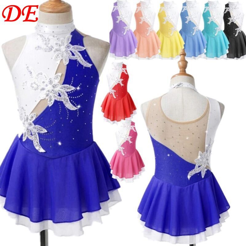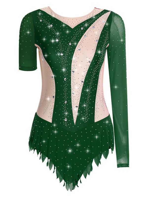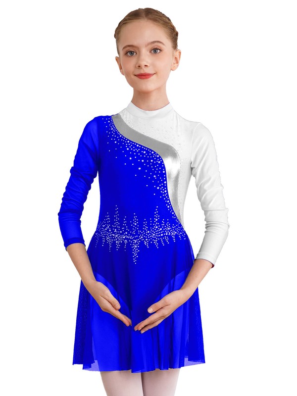 DE iEFiEL Eiskunstlauf Kleid Mädchen Glitzer Ballettkleid Langarm Rollschuhkleid
