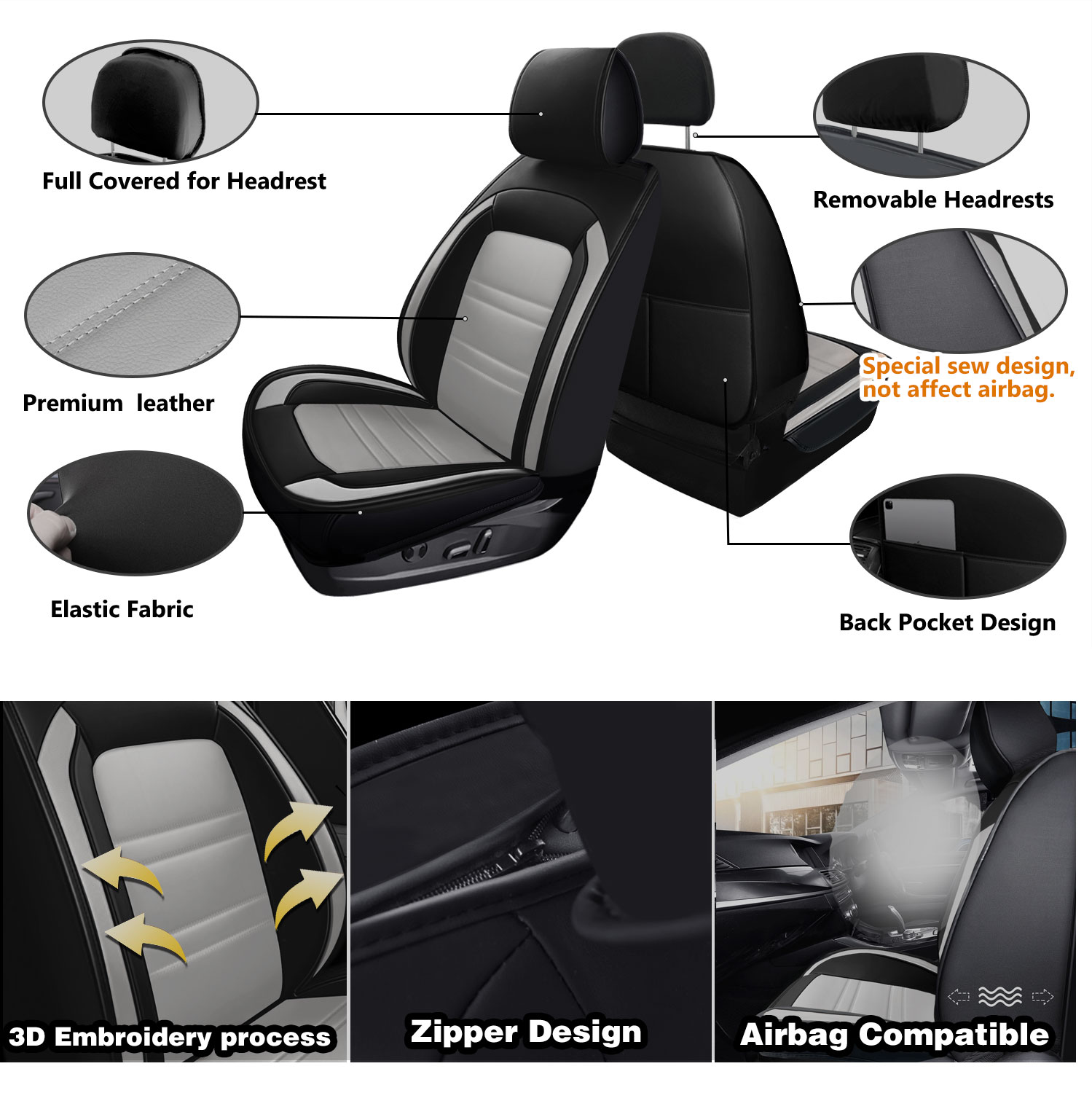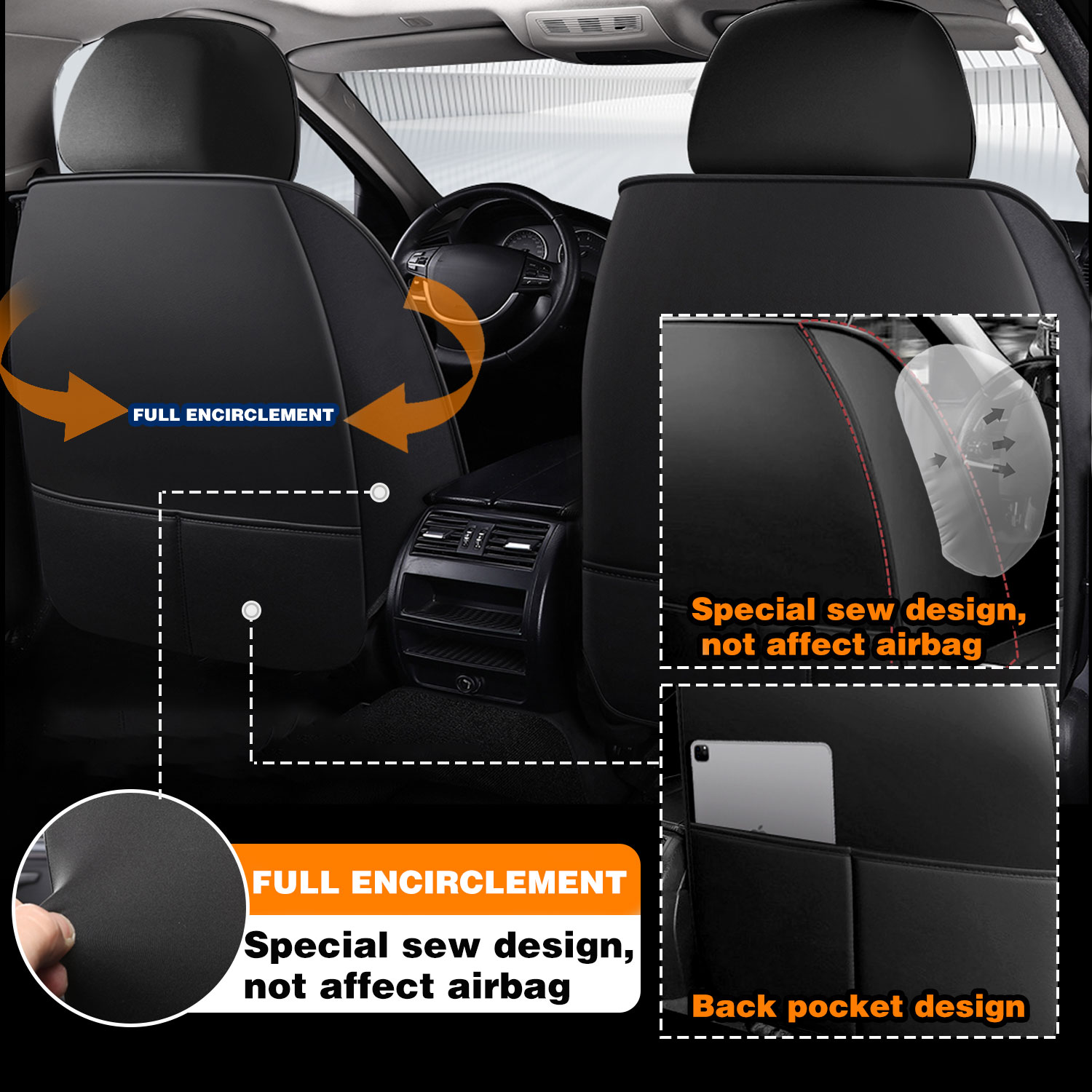 Compatible Airbags:We have kept enough space for the airbag,the seat belt slot also has been reserved,do not affect side air bags to come out in emergency