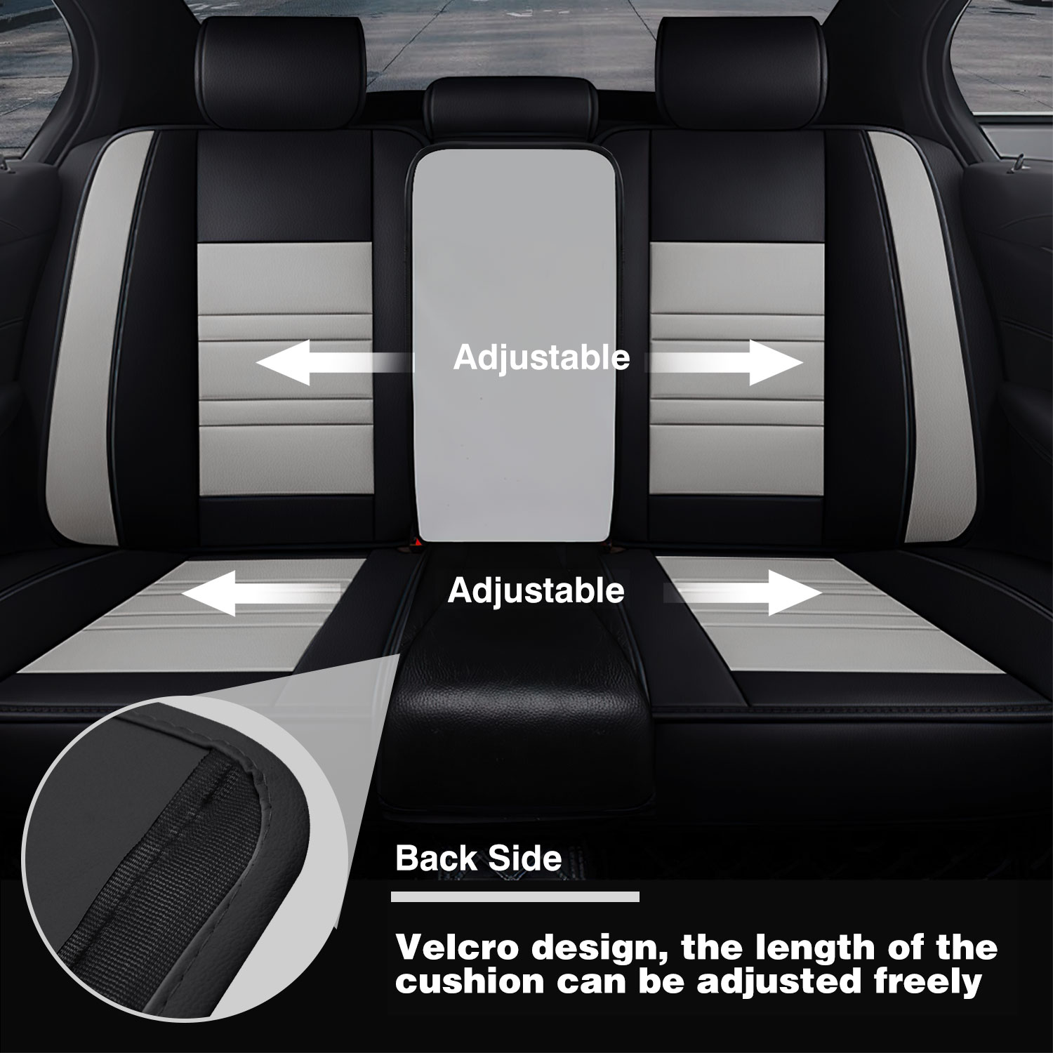 Adjustable and detachable rear bench, free to fit different seat sizes. Universal fit most 5-seat cars, SUVs, trucks and vans.