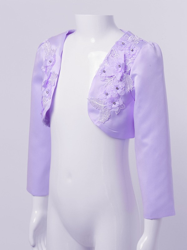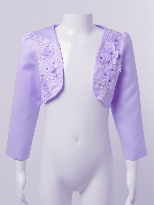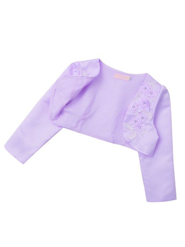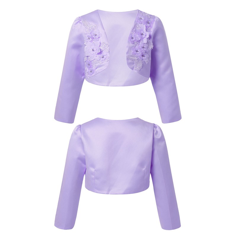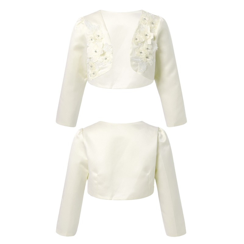Kids Girls Sheer Color Long Sleeve Embroidered Flowers Diamonds Cropped Top Coat Poncho Capelet Wrap For Wdedding Dress Princess Dress Party Dress.