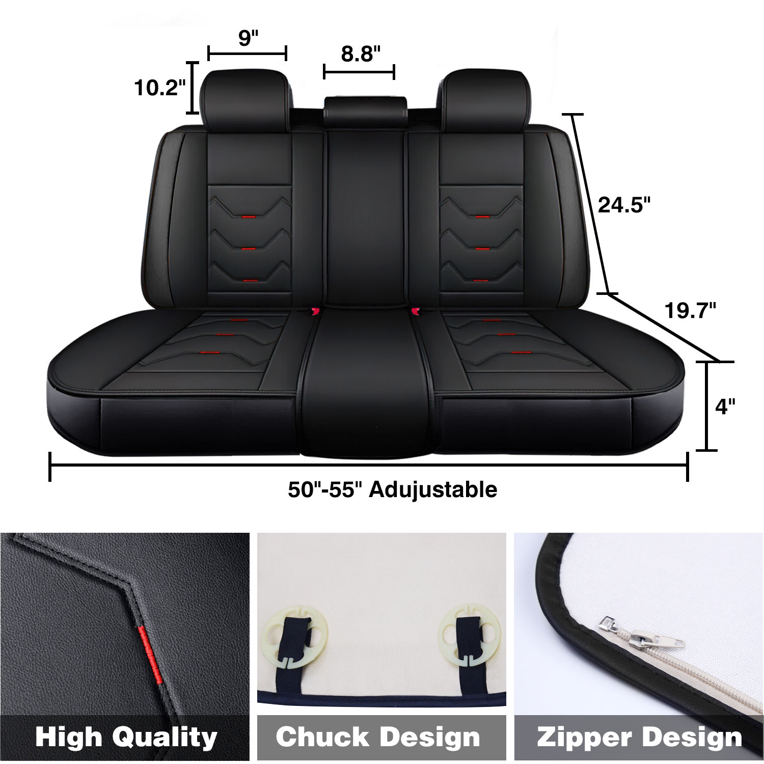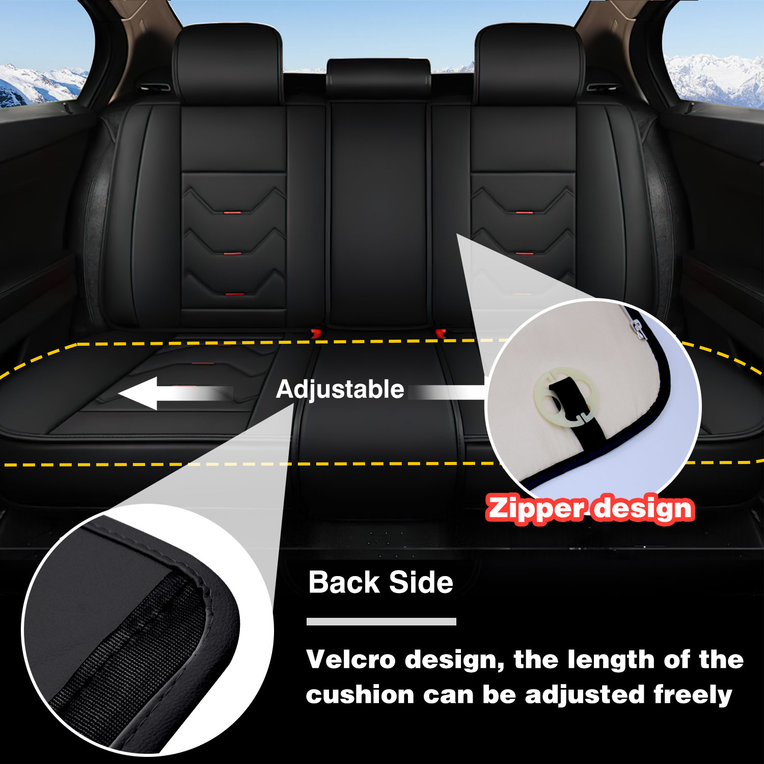 Universal Fit: This seat cover is designed to fit most vehicles, with an adjustable length of 48-56 inches. It is easy to install and adjust using the velcro connection, making it more convenient than other covers that use zippers.