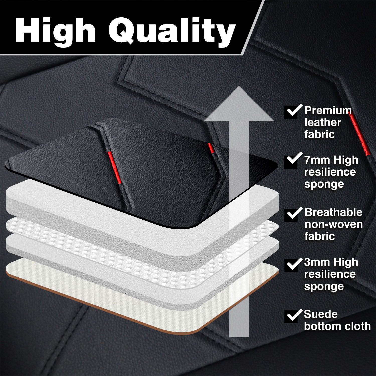High-Quality Material: Seat cover is made of high-quality materials, including soft and durable faux leather on the surface, a high-rebound sponge in the middle for maximum comfort, and non-slip fabric on the bottom layer to keep the cover in place. It is also waterproof, making it easy to clean and maintain.
