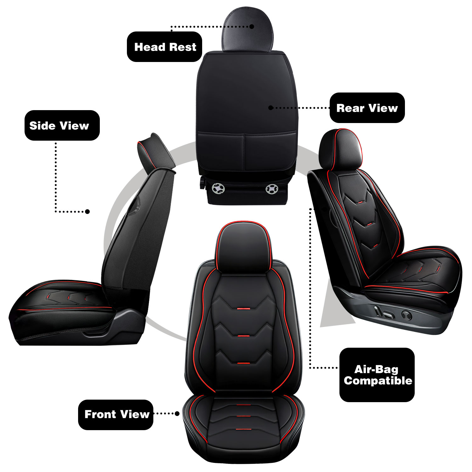 Airbag Compatibility: The seat cover has been designed to be compatible with airbags, with enough space reserved to allow for their deployment in case of an emergency. The seat belt slot has also been reserved, ensuring that it does not interfere with the use of the seat belt.