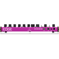 The EDGE has 44 controls to give you direct and real-time access to all important parameters, all laid out in a highly intuitive format that puts the fun back in to your beat creation. Input and output connections include MIDI In, MIDI Out/Thru, USB, OSC 1 CV, OSC 2 CV, OSC Decay, ADV/CLOCK, Trigger, Velocity, Noise Level, 1-2FM AMT, EXT AUDIO, Tempo, Play/Stop, VCF MOD, VCF Decay, VCA CV and Pitch. An external MIDI keyboard, footswitch or expression pedal can be connected to the EDGE so you can have even more control over your beats and basslines. If one EDGE isn’t enough for you, you can chain multiple EDGE’s for more intricate combinations.