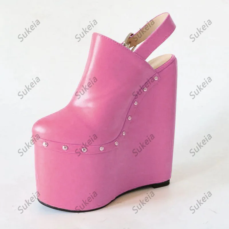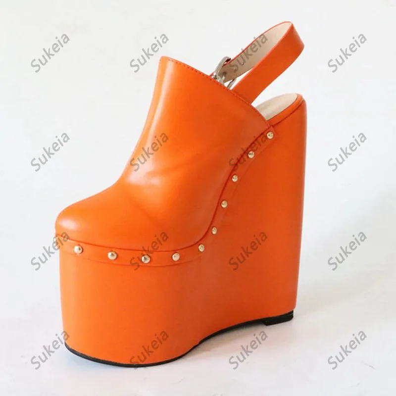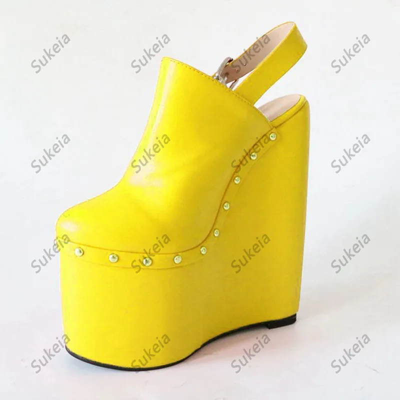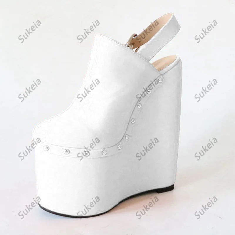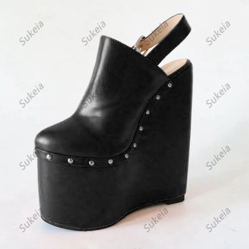 Sukeia Handmade Women Platform Slingback Pumps Wedges High Heels Round Toe Beautiful Black Party Shoes Ladies US Plus Size 5-20