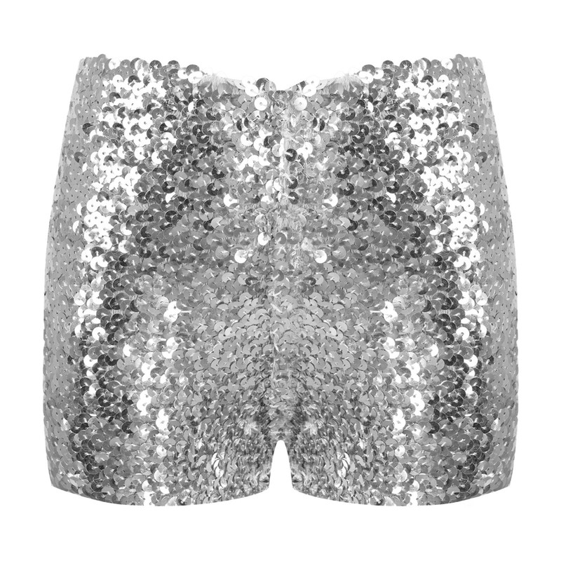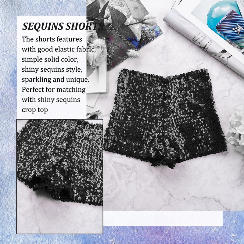 The shorts features with good elastic fabric, simple solid color, shiny sequins style, sparkling and unique.