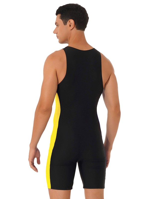Men Sleeveless Front Zipper Color Contrast Patchwork Side Short Bodysuit Triathlon Wetsuit.