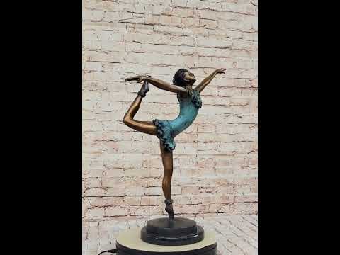 This exquisite sculpture, crafted from 100% bronze, immortalizes the ballerina's beauty and skill. The handmade piece features a rich brown patina, adding depth and texture to the intricate details of her form. The ballerina is mounted on a sleek black marble base, which not only provides a sturdy foundation but also enhances the sculpture's elegance. The use of the traditional "Lost Wax Method" in its casting ensures high quality and precision, bringing the ballerina's dynamic pose to life with remarkable realism.