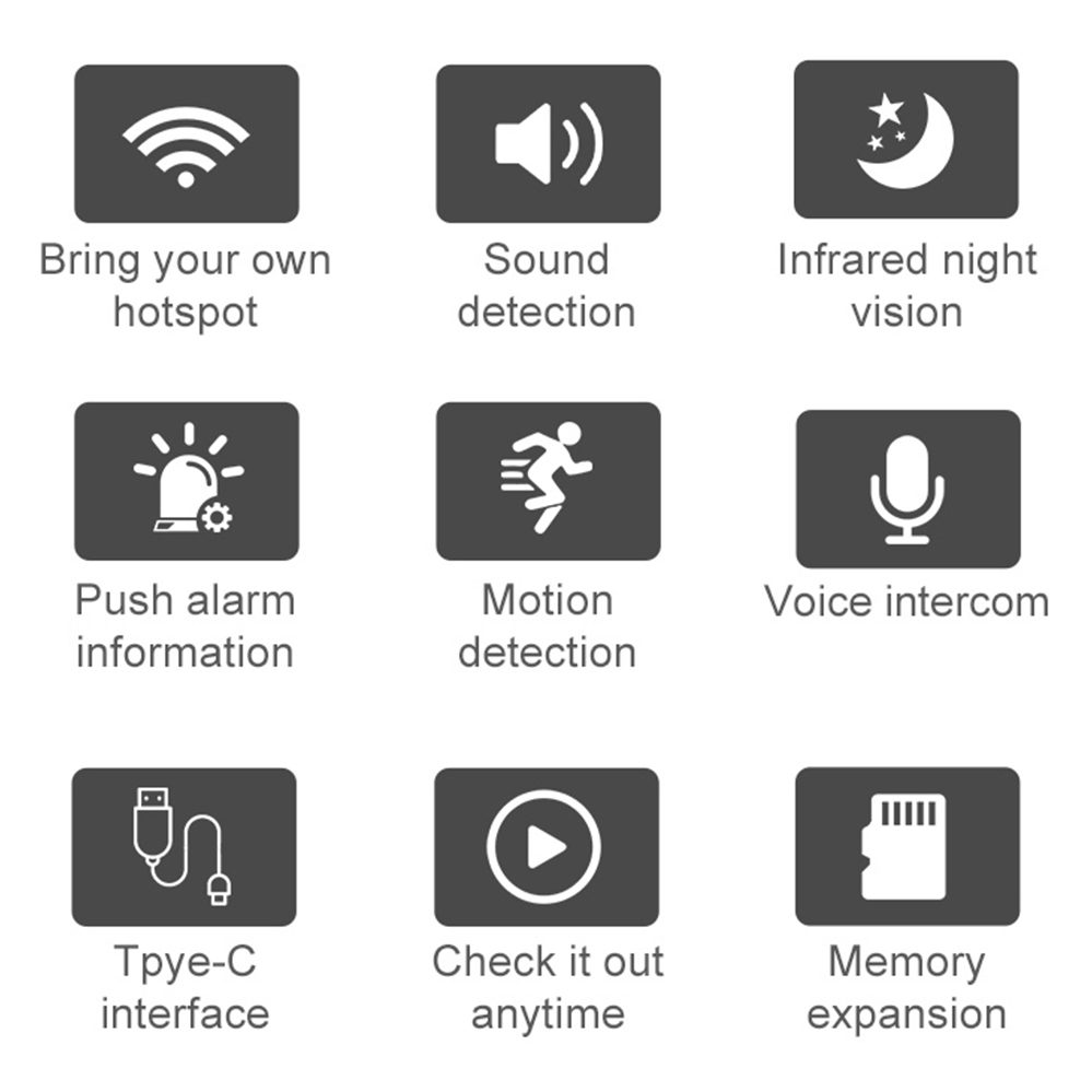 3. Function: 1080P security camera supports motion detection; powerful noise reduction function, two-way voice chat; TF memory card expansion loop recording; 1MP pixel CMOS sensor.