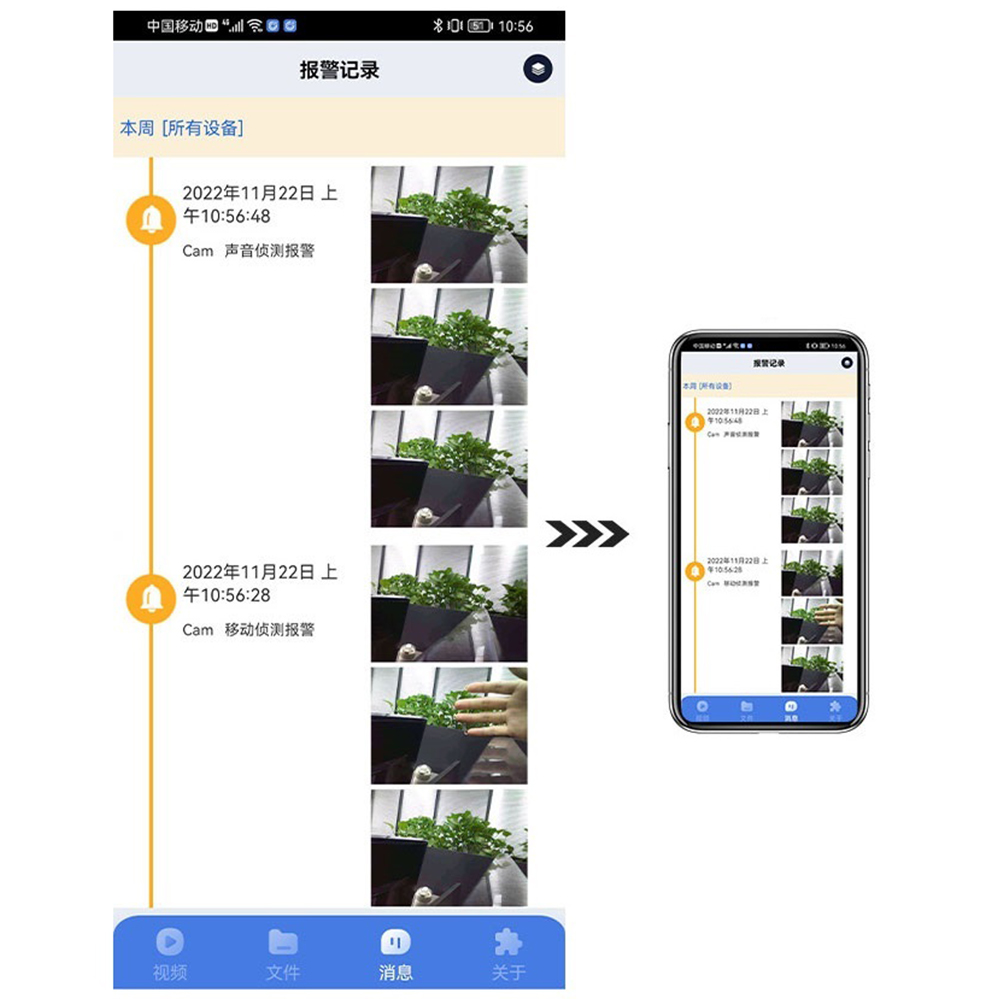 2. Alarm: Simple operation of mobile phone connection APP; alarm linkage: APP push; automatic infrared night vision remote control alarm reminder.
