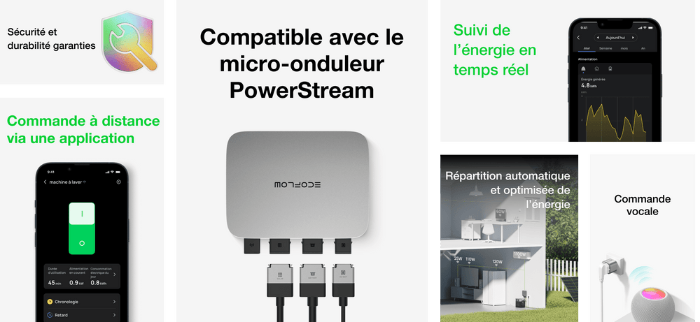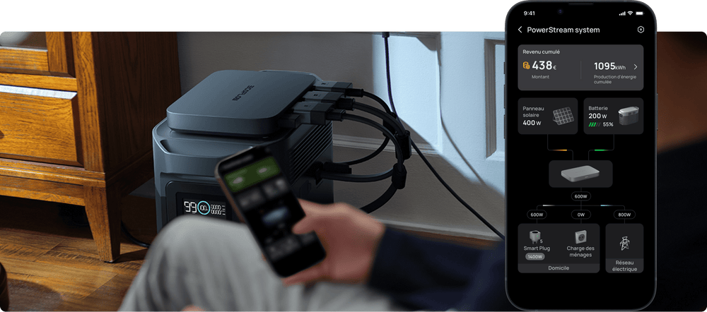 Lorsque des Prises intelligentes sont intégrées à votre kit solaire de balcon, elles surveillent minutieusement la consommation électrique des appareils connectés. Ceci permet au micro-onduleur de distribuer de manière optimale et automatique l'énergie nécessaire à chaque appareil. L'énergie excédentaire est quant à elle stockée dans la batterie, garantissant ainsi qu'aucune énergie n'est gaspillée. Lorsque les Prises intelligentes sont éteintes, le système alloue une quantité fixe d'énergie à vos circuits domestiques. Si votre consommation est inférieure à cette allocation, l'excès d'énergie n'est pas utilisé efficacement et est donc gaspillé.