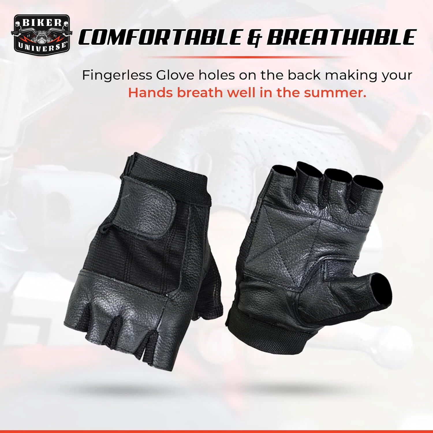 - Satisfaction Guaranteed: Biker Universe Fingerless Motorcycle Leather Gloves comes with a money-back satisfaction guarantee. We are very proud of our product and encourage you to contact us if you have any problem kindly inform us, and we will provide you a refund without any question.