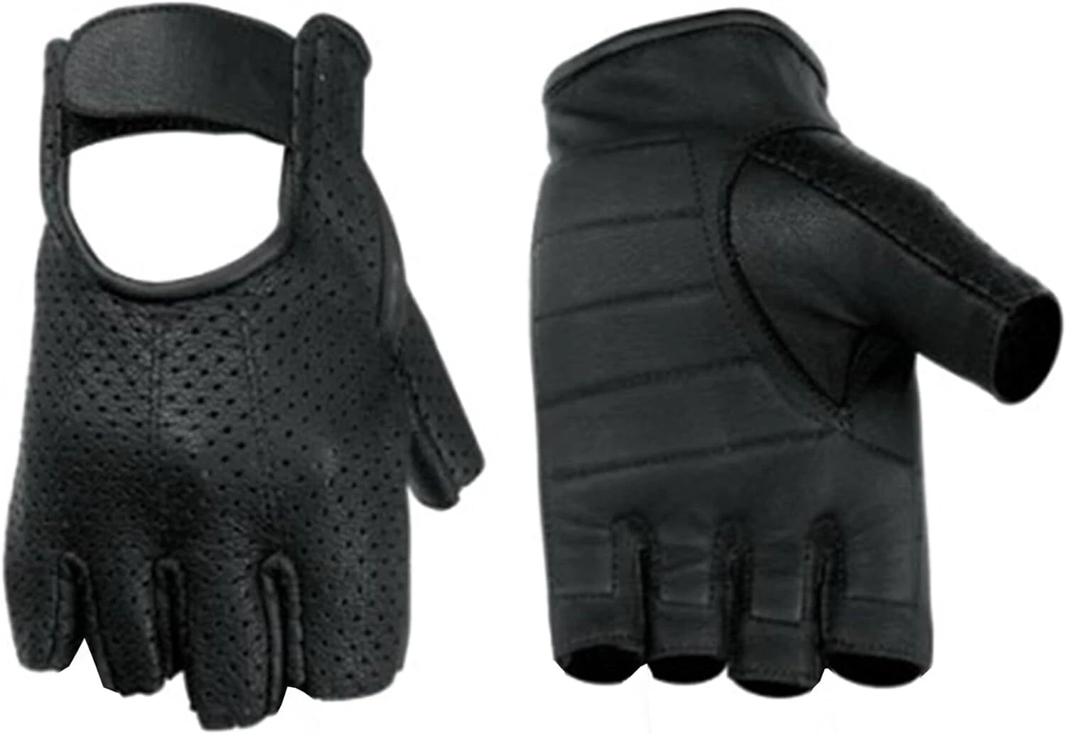 Leather Gloves Fingerless Motorcycle Gloves with Perforated Action and Gel Palm