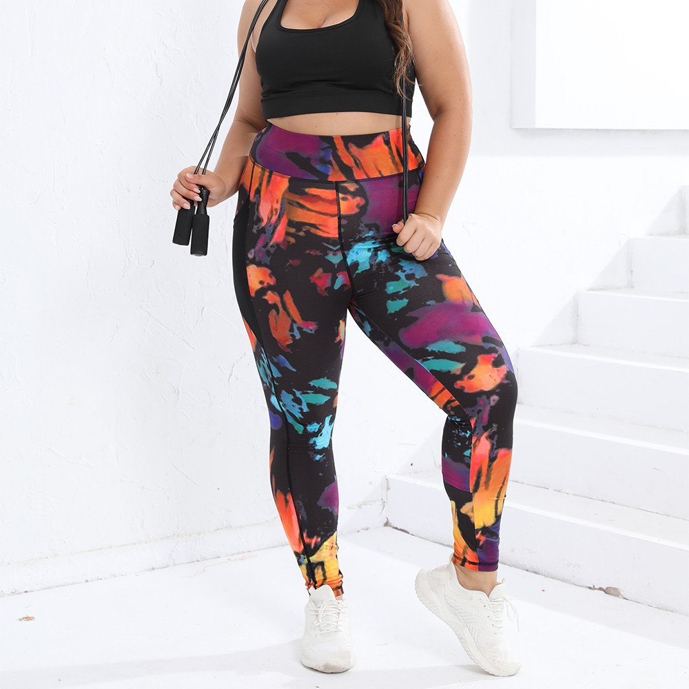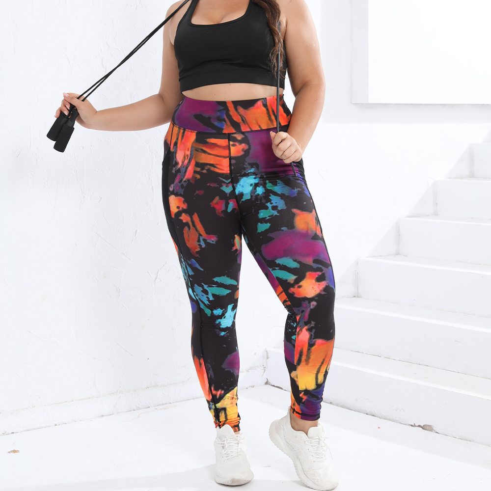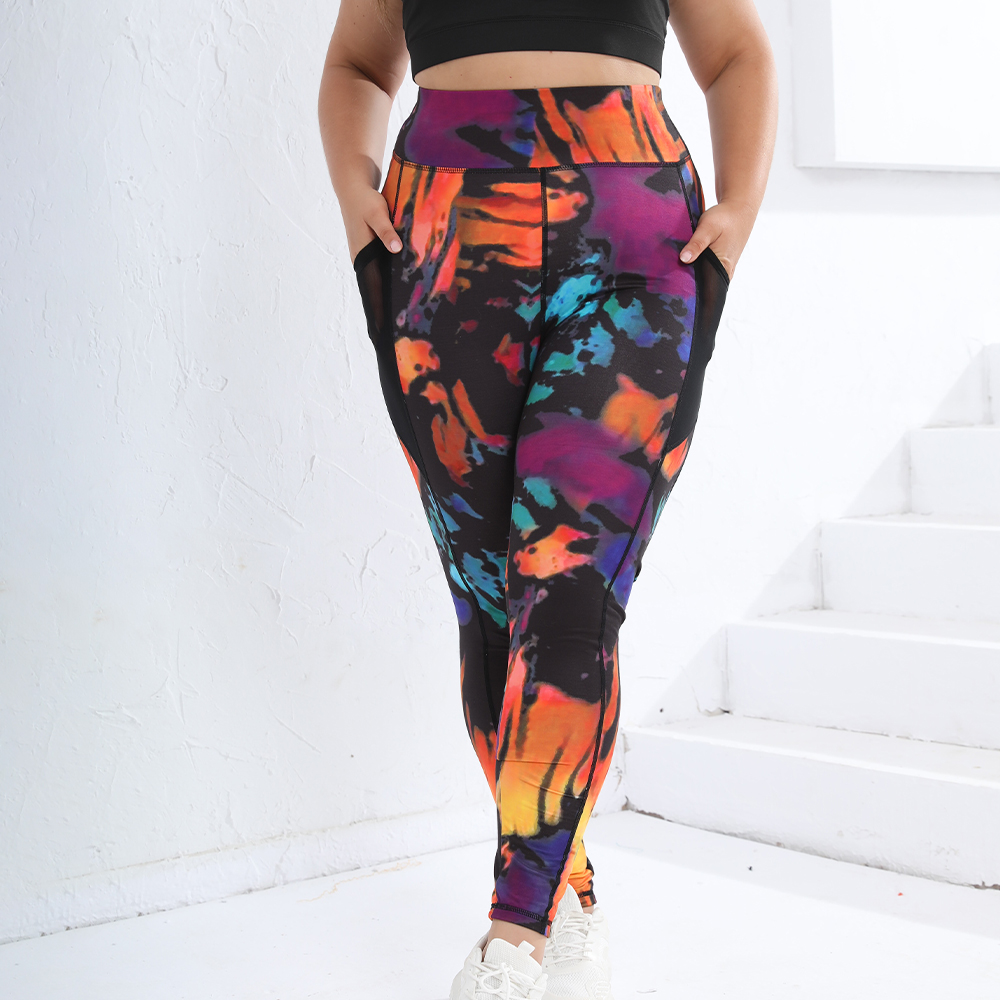 Tie Dye Plus Size Women's Leggings Sports Pocket Yoga Pants Gym Fitness 0XL-4XL