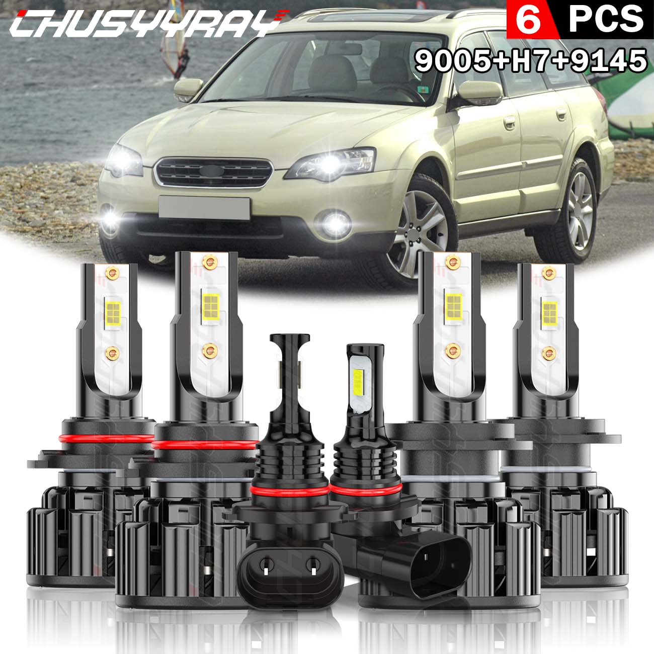 For Subaru Outback 2005-2009 6000K LED Headlight High/Low + Fog Light Bulb Combo