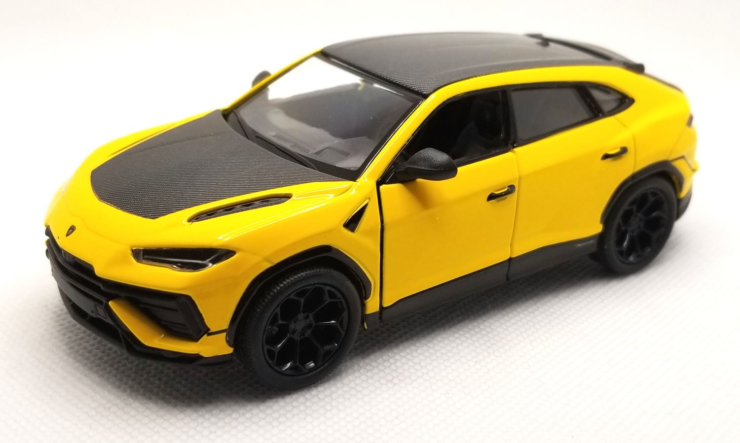 This is a Brand New Kinsmart - 1:40 Scale Model Lamborghini Urus Performante Yellow. The model is about 5 inches long. This model comes with pull back & go and opening doors features. These models come in a big display box and they don't have individual boxes. They will be expertly packed and shipped.