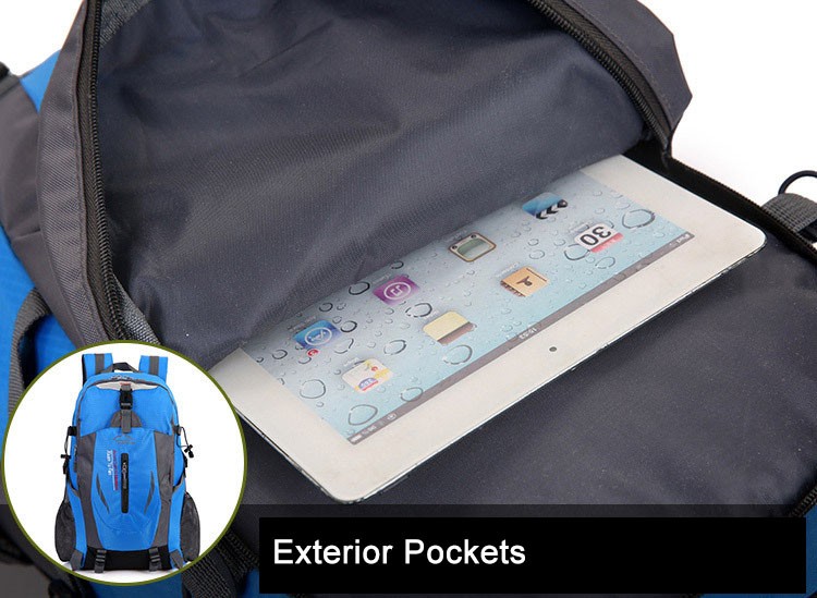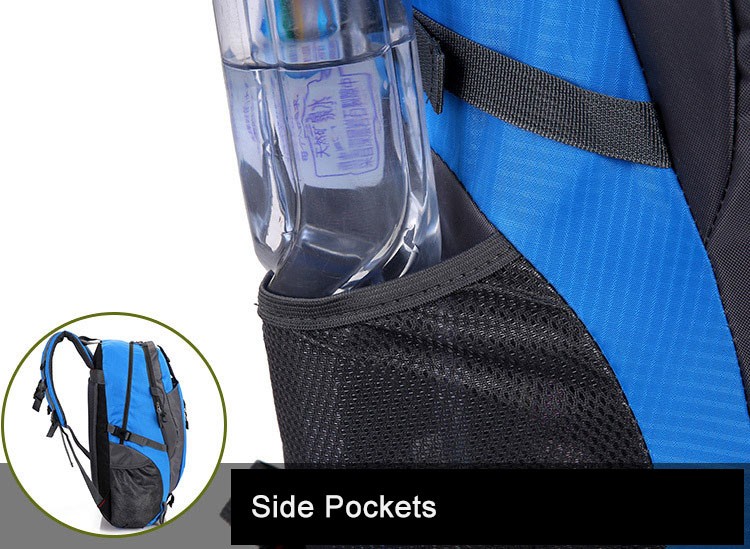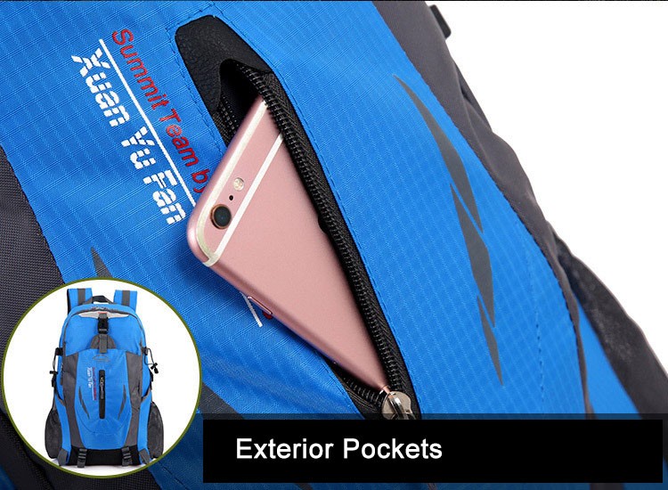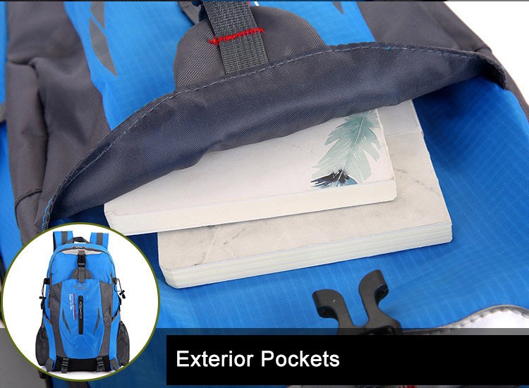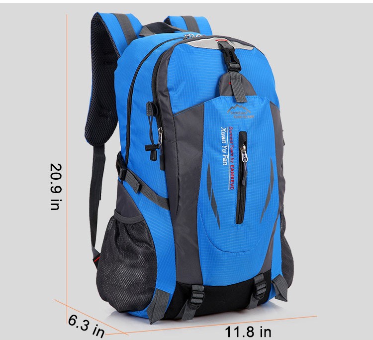 LARGE CAPACITY BACKPACK: This hiking backpack has 40L storage space, dimension is 20.9*11.8*6.3 inch. With multi-compartment design includes one main zipped compartment, one zipped front pockets and two side pockets, one separator and one small zippered pocket in the main compartment, there is more than 10 pockets can hold everything you need in travels, such as phone, pens, maps,bottles or umbrella etc. You can easily organize all your essential stuffs.