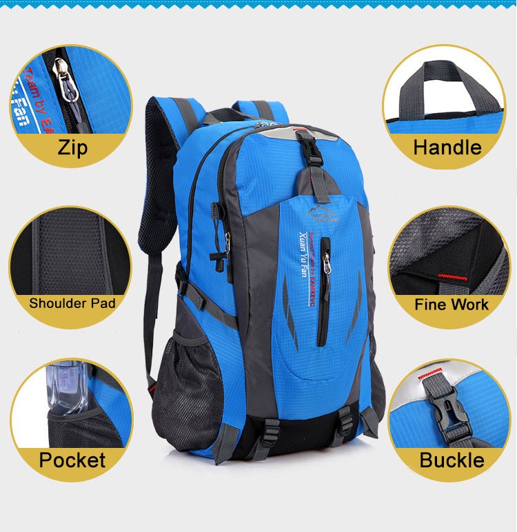 DURABLE MATERIAL: Our camping backpacks made of high quality tear and waterproof polyester fabrics with smooth metal zippers. Pack and shoulder strap stitching is not easy to tear even if it bears heavy items. All stress points are reinforced with bar tacking to increase its longevity.