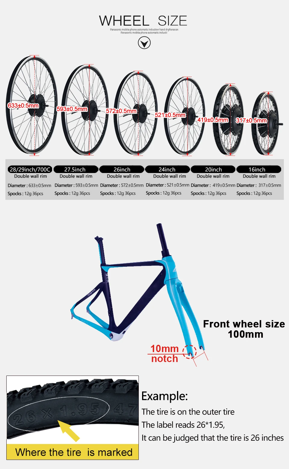 Wheel Diameter (Inch): 16"/20"/24"/26"/27.5"/28"/29"/700C---Optional