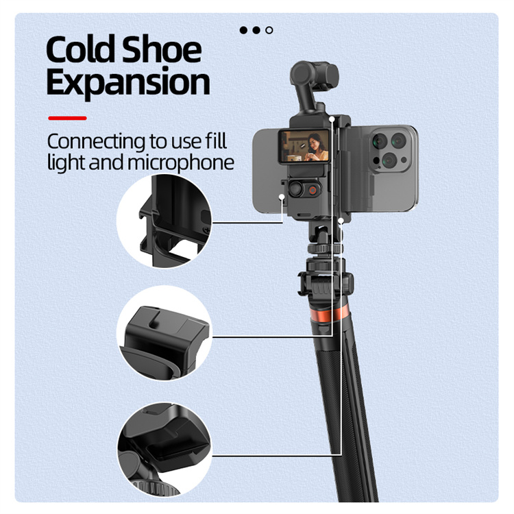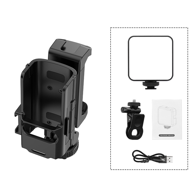 l 1/4 thread can be matched with tripod and extension rod, cold shoe interface can be connected to the microphone, fill light