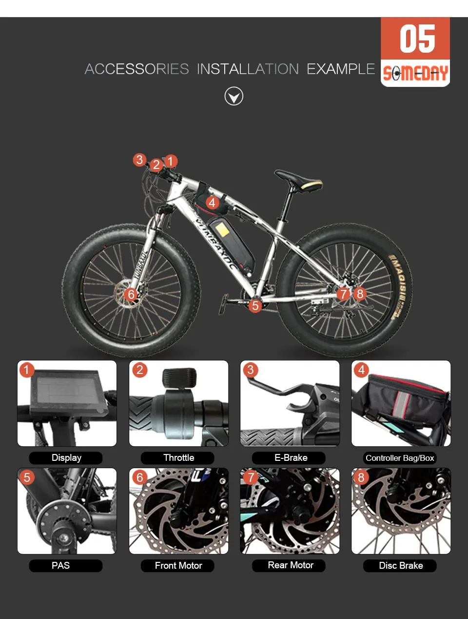Gifts: 1 * Controller Bag( not battery) + 1 * Disc brake+1*Torque Arm+1*Install cable ties and stretch film+1*Installation Manual