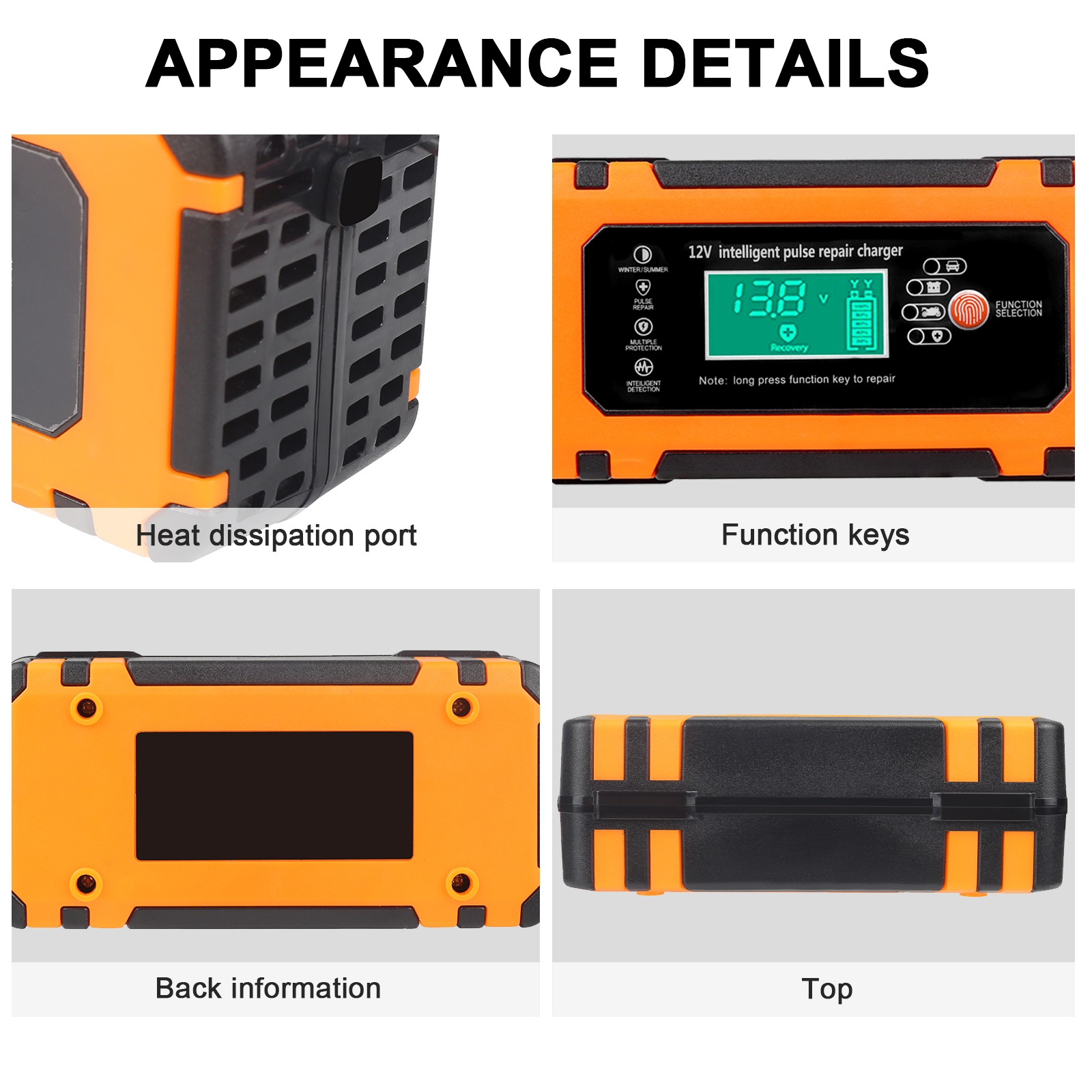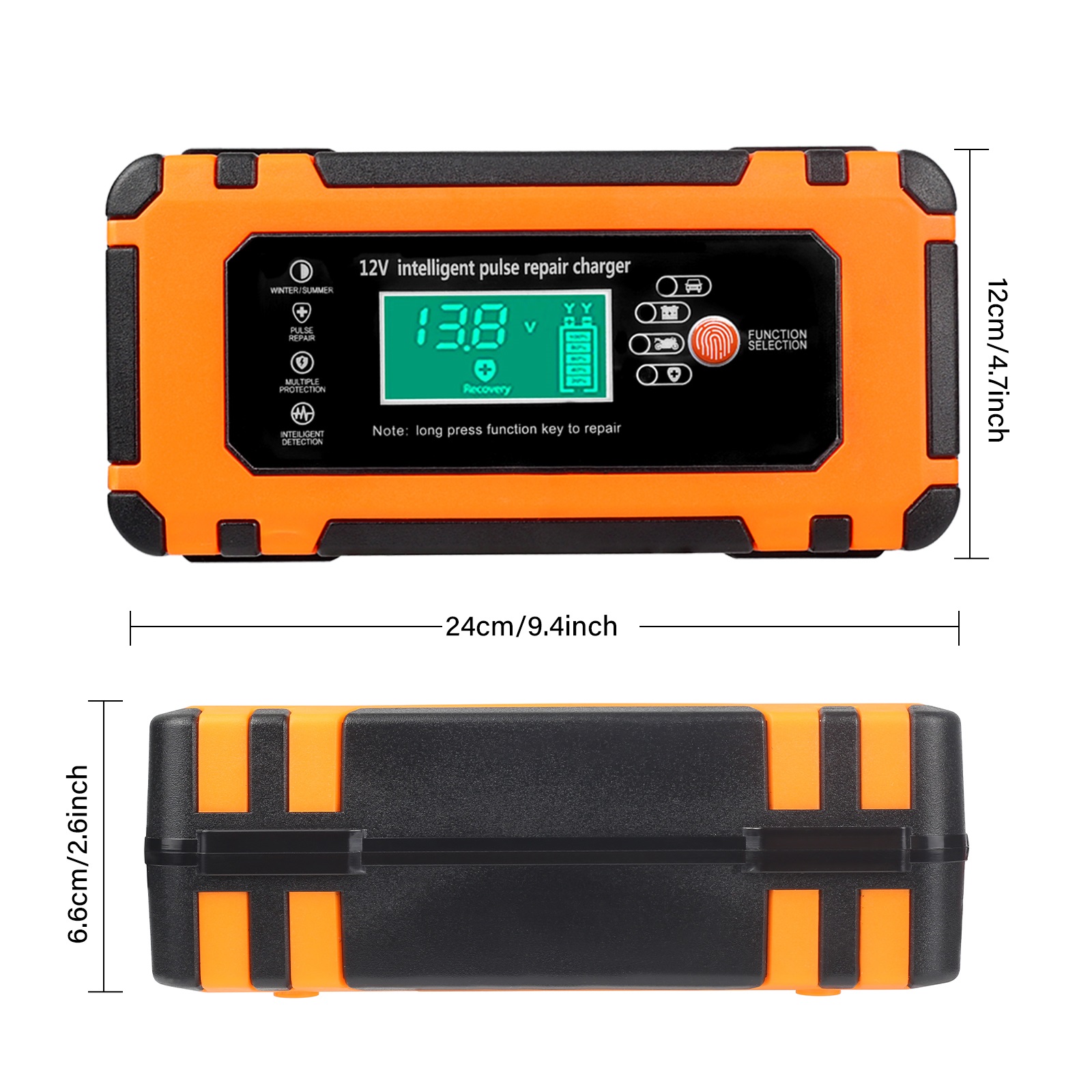 Built-in advanced battery REPAIR mode to help to recover old/idle batteries and extend battery life. Please use repair mode if the car battery charger cannot charge the battery. The high-frequency and low-frequency pulse technology has good repair and activation effects.