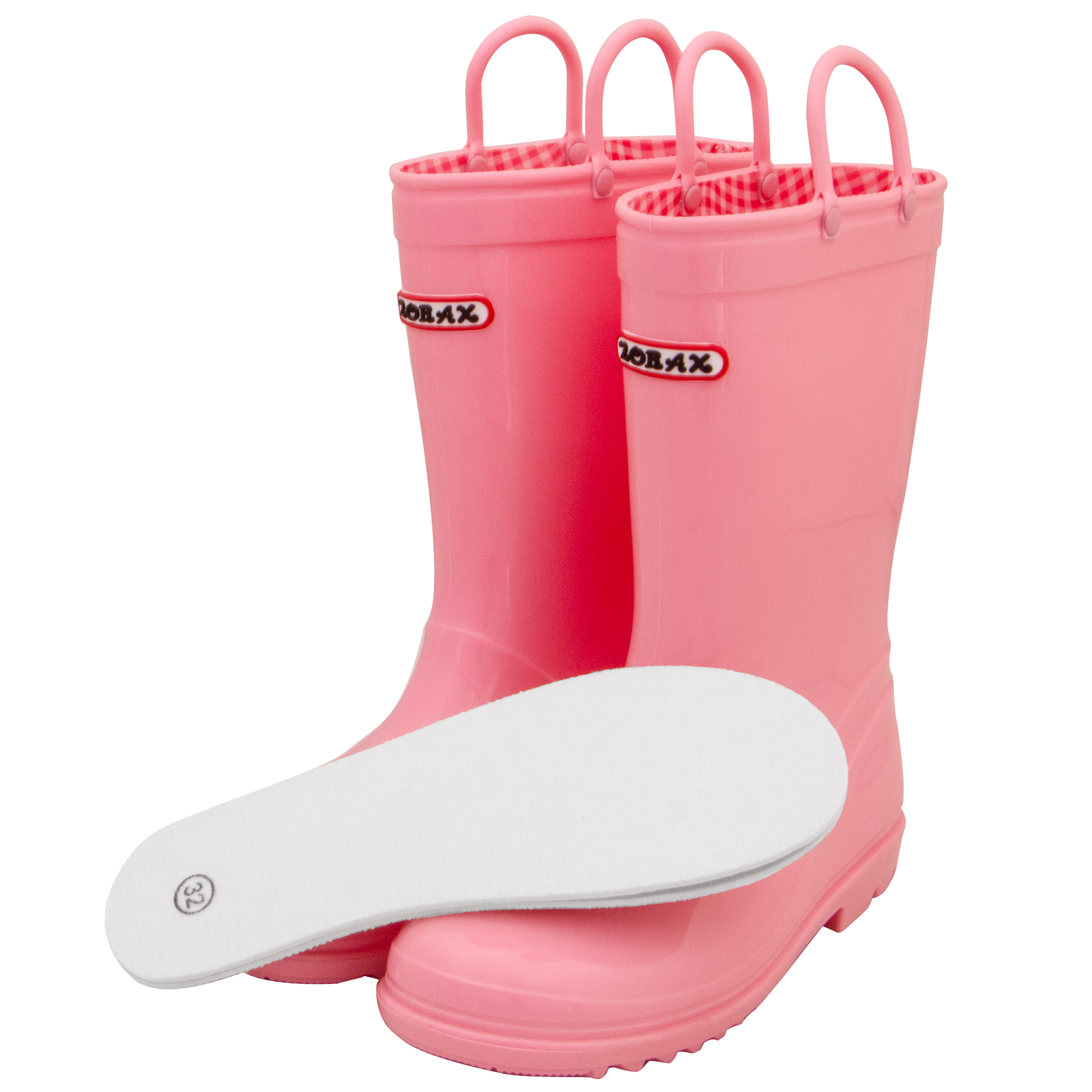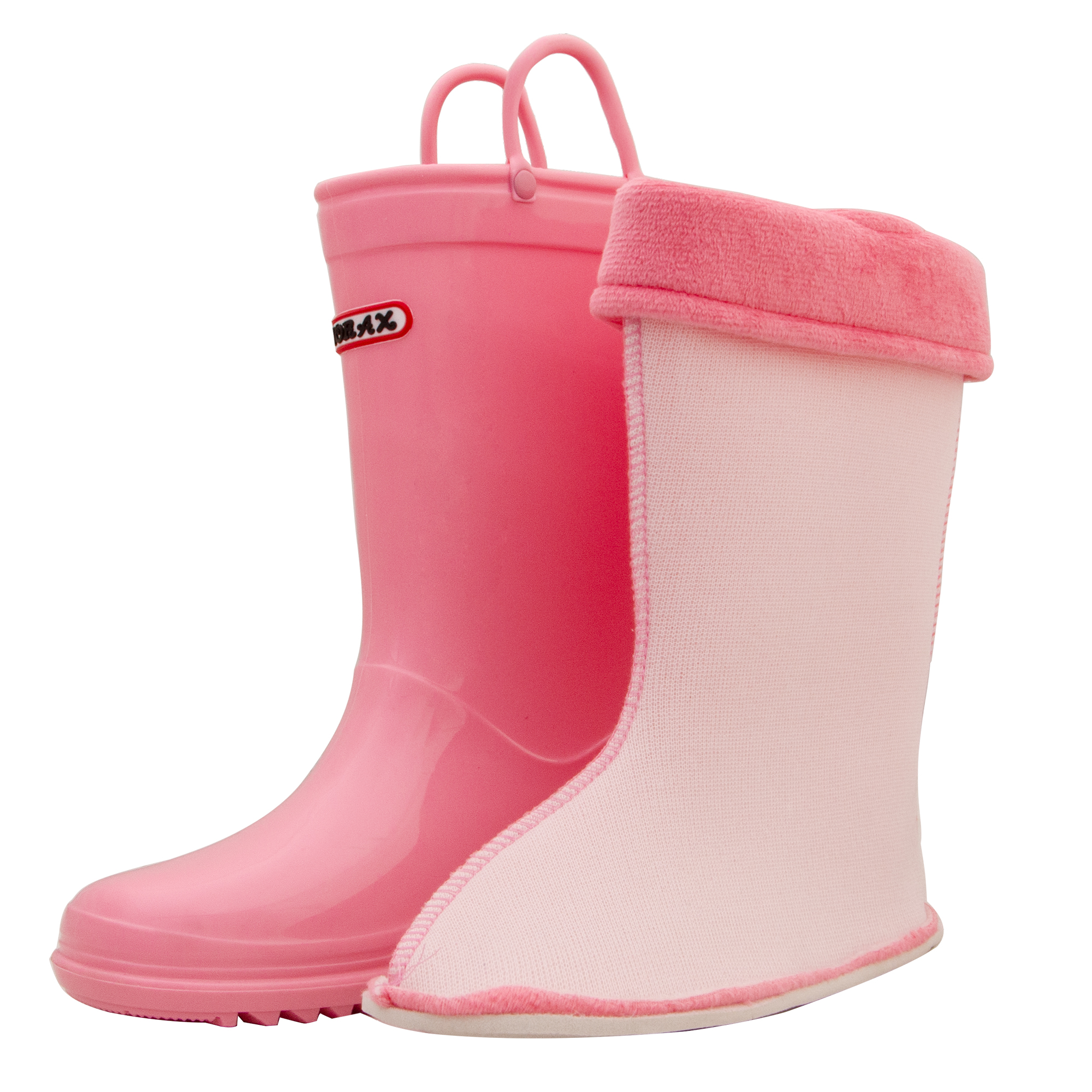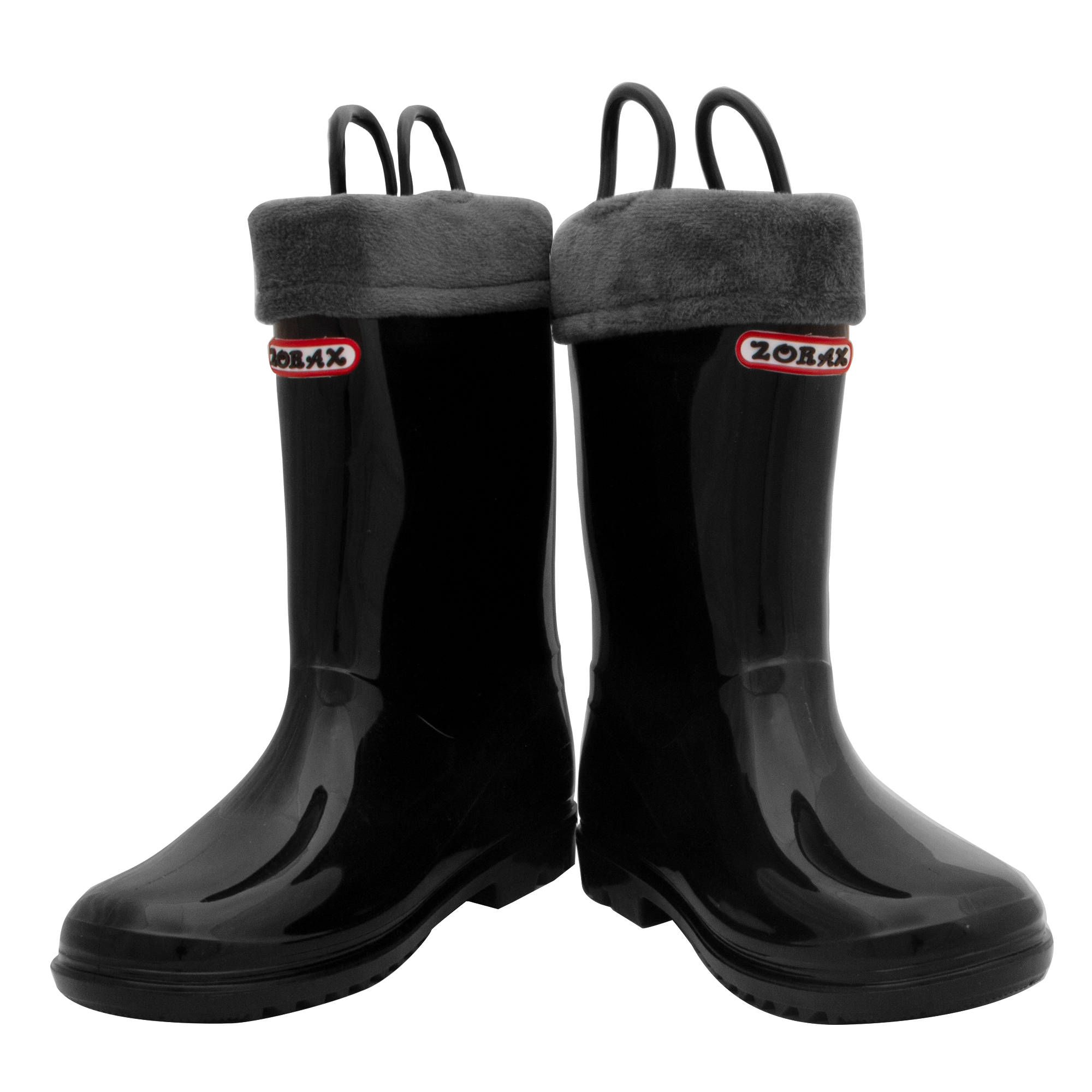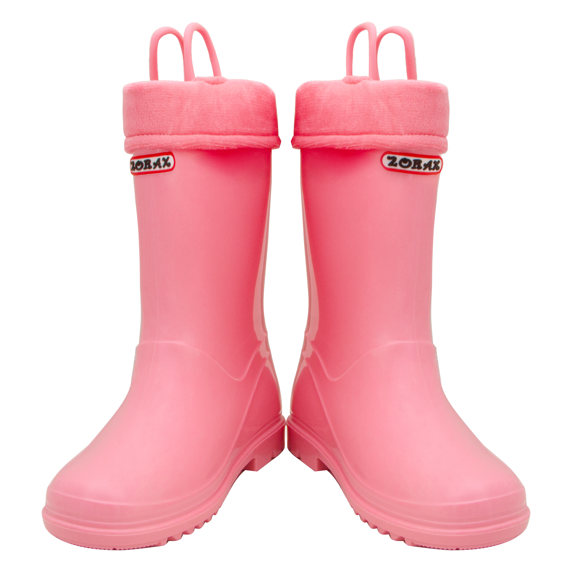 Zorax Girls Boys Waterproof Kids Handle Rain Boots with Warm Lining Child Shoes Wellies Unisex Toddler Wellington Boots: