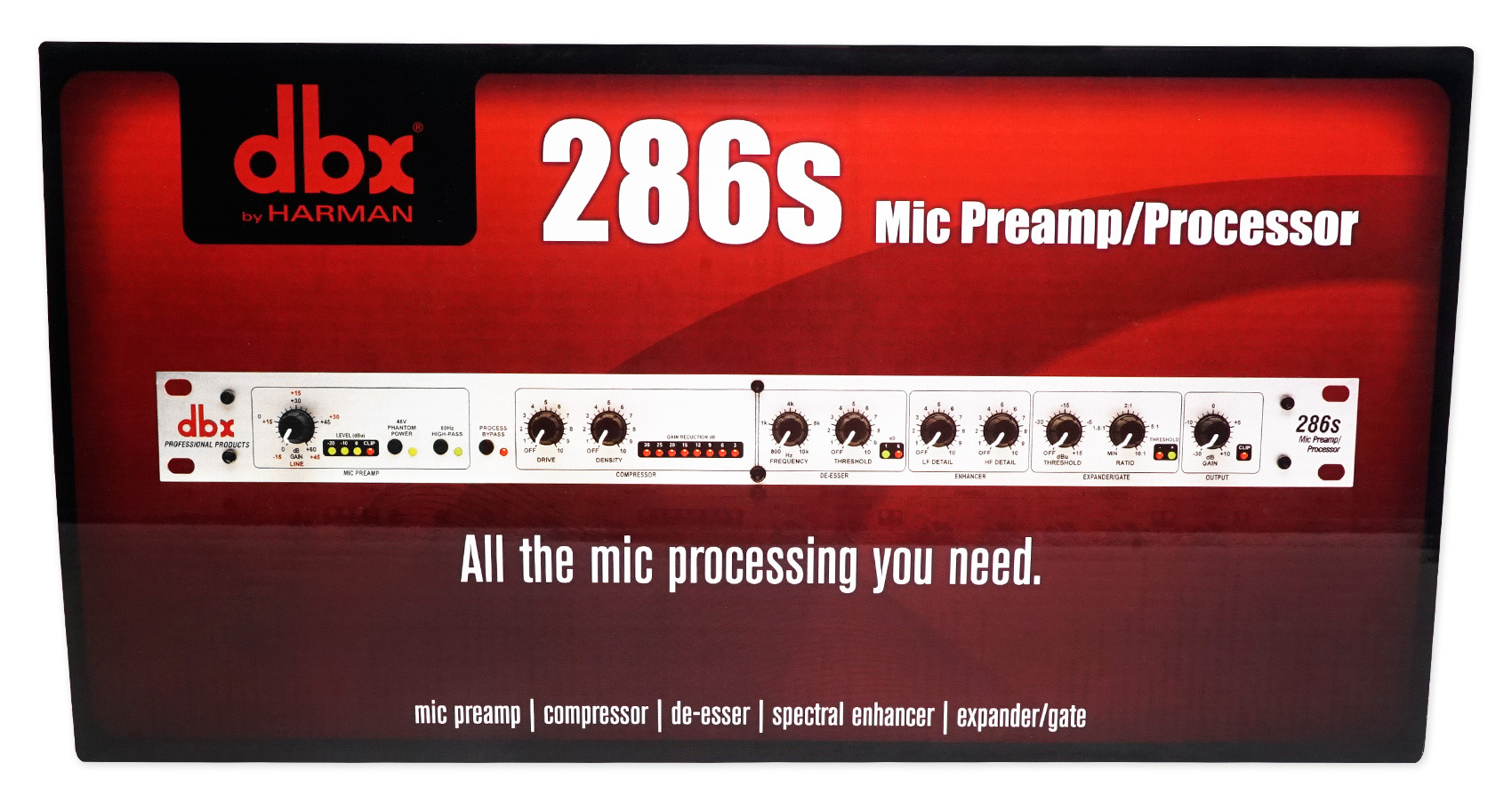 The dbx® 286s is a full featured Channel Strip Processor that delivers a studio quality microphone/instrument preamplifier and four processors that can be used independently or in any combination. Why mic up vocals and instruments through a noisy, blurry mixer? The sonically pristine dbx 286s Mic Preamp has all the features you need, including wide-ranging input gain control, switchable +48V phantom power, and an 80Hz high-pass filter to remove low frequency hum, rumble or wind. Use the patented dbx OverEasy® compressor to transparently smooth out uneven acoustic tracks or deliver that classic "in your face" vocal performance that only a dbx compressor can. Eliminate vocal sibilance and high frequency distortion from instruments such as cymbals with the frequency tunable De-Esser. Fine-tune the Enhancer HF Detail control to add sparkle and crispness to your tracks and make adjustments to the LF Detail control to add fullness and depth to vocals and bass instruments while cleaning up the muddy low midrange frequencies. And, the separate threshold and ratio controls on the Expander/Gate allow you to subtly reduce headphone leakage or radically gate noisy guitar amps.