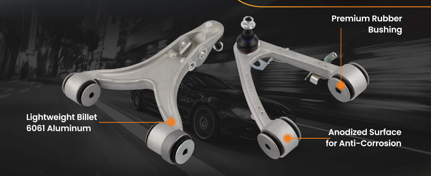 - The front control arm kit is made from premium aluminum, ensuring high strength and durability.