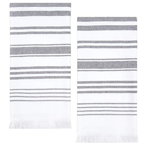 - 100% OEKO-TEX COTTON: Durable cotton woven together in a simple stripe design with a soft and absorbent terry backing. These decorative bathroom hand towels are made of 100% Oeko-Tex cotton, meaning this product surpasses the highest standard of testing and helps you to make responsible decisions which protect our planet for future generations.
