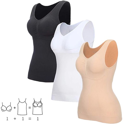 2/3 Packs Women Tummy Control Shapewear Tank Tops with Built in Bra Body Shaper