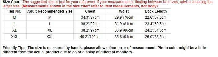 | Tag No. | Adult Recommended Size | Chest | Waist | Back Length |