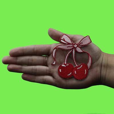 Add some fruity fun to your wardrobe with the Ribbon Cherries Patch! This embroidered iron-on patch is perfect for adding a playful touch to jackets, bags, or hats. No sewing is required! Just iron on and show off your unique style. (Patch only, clothing not included)