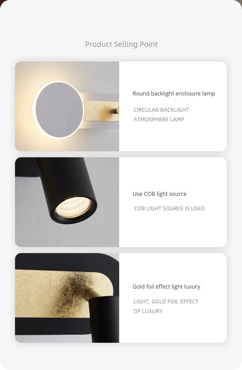 Nordic Modern LED Wall Light Backlight 350° Rotary Adjustable Bedroom Bedside Study Reading Sconce Lamps With Switch Home Decor