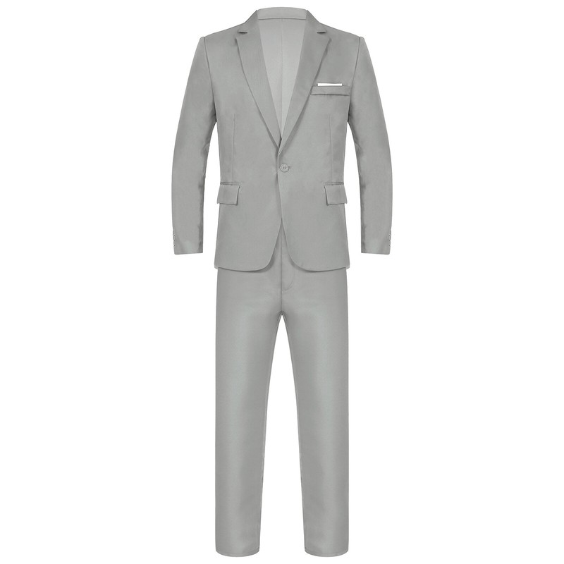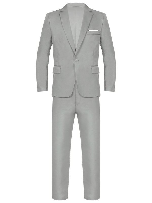 Men Gentleman Suit One-Button Lapel Jacket Blazer Long Pants Set.