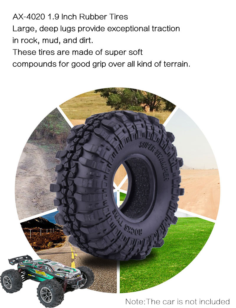 4Pcs 1.9 Inch AUSTAR AX-4020 110mm Rubber Rocks Crawler Tires Tyre for 1/10 Traxxas Redcat SCX10 AXIAL RC4WD TF2 RC Car