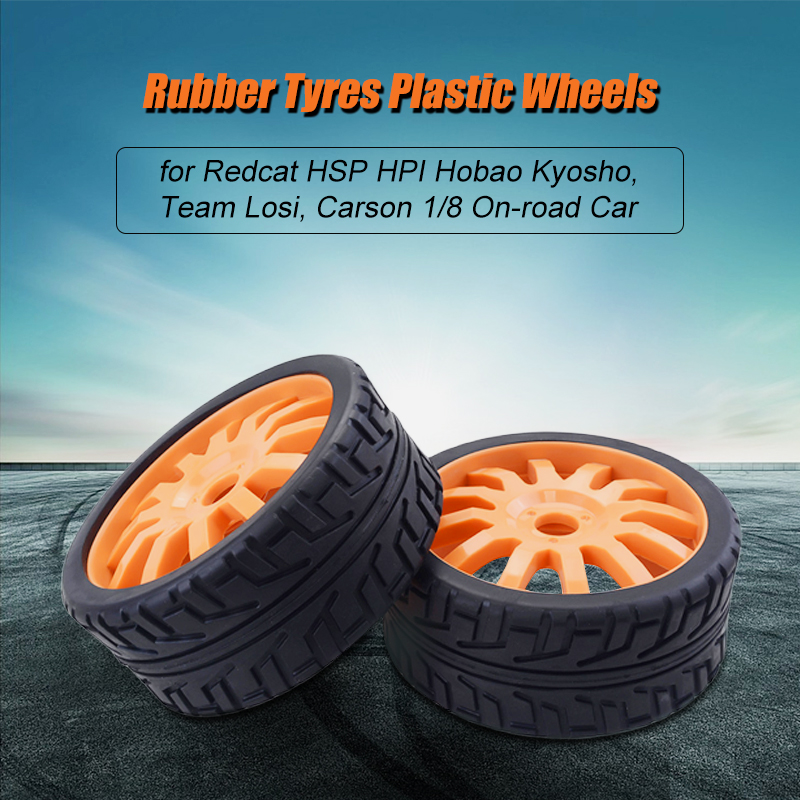 1/8 RC Car Rubber Tyres Plastic Wheels for Redcat HSP HPI Carson Hobao Kyosho Team Losi 1/8 On-road Car 2PCS White/Orange/Black