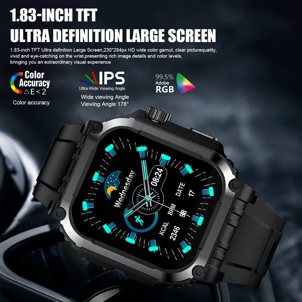 2. 1.83-inch high-definition large screen: adopting a 1.83-inch square screen, 240x284 high resolution, wider color gamut, clear picture quality, bringing you extraordinary visual experience;