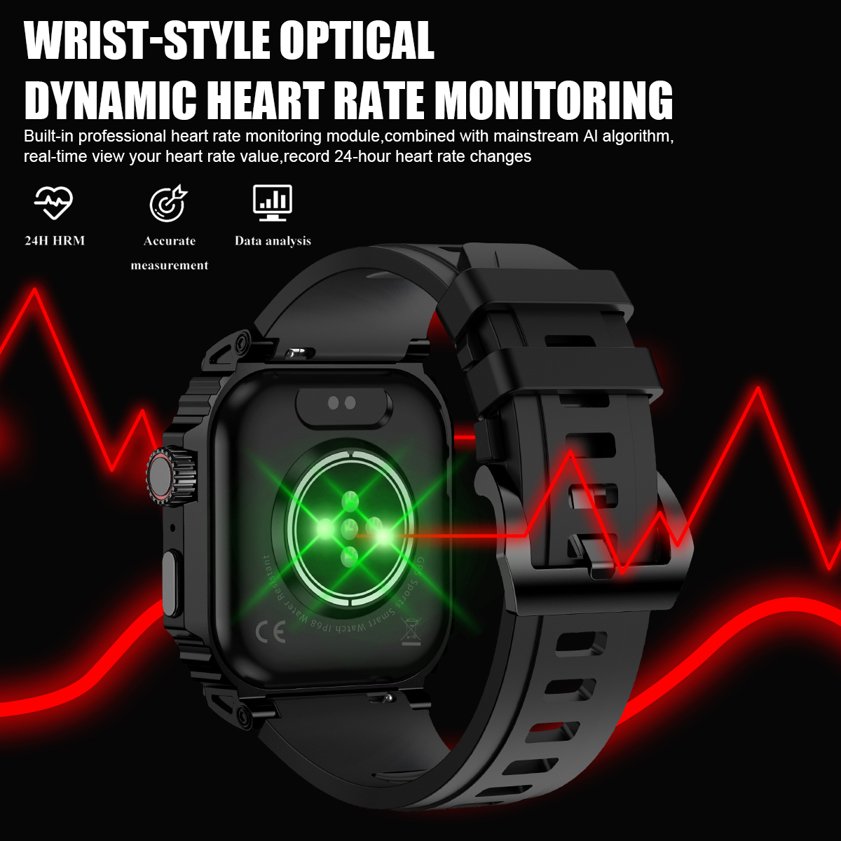 7. Dynamic heart rate monitoring: Built in professional heart rate monitoring module, combined with AI analysis, records heart rate data 24/7;
