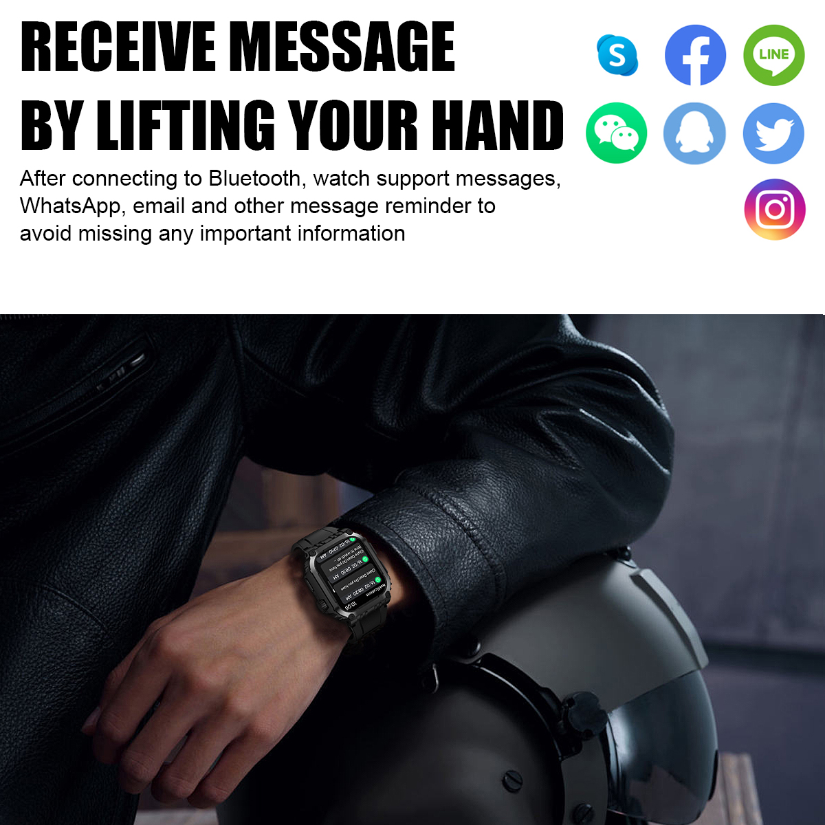 5. Information prompt, raise your hand to check: After connecting to the phone via Bluetooth, it supports message and chat software message reminders, so as not to miss any important information;