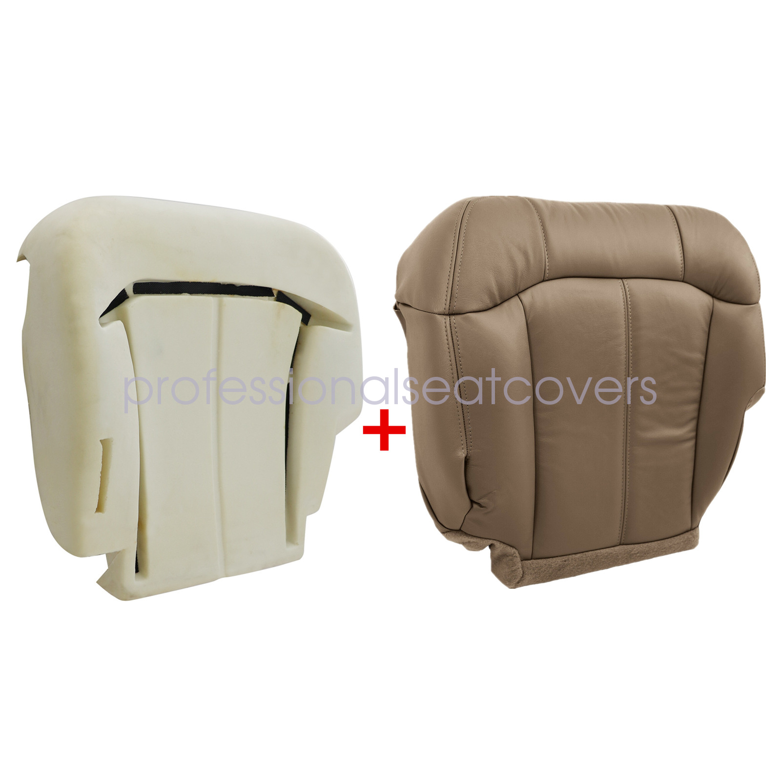 Replacement For 1999 2000 2001 2002 Chevy Silverado GMC Sierra Driver Bottom Leather Seat Cover & Foam Cushion Med Tan 522 or 52i