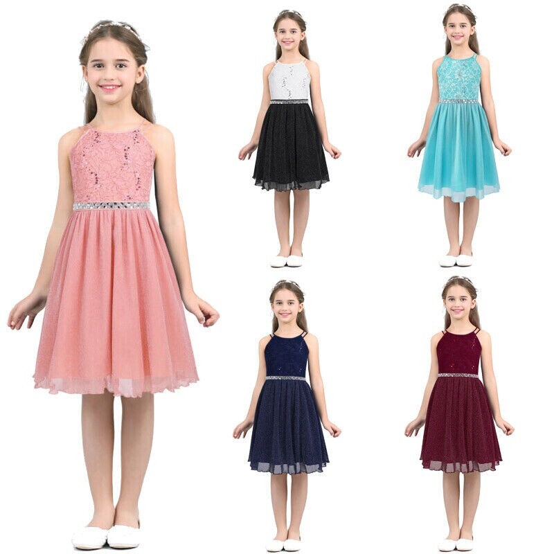 DE iEFiEL Mädchen Festlich Hochzeit Brautjungfern Neckholder Prinzessin Kleid