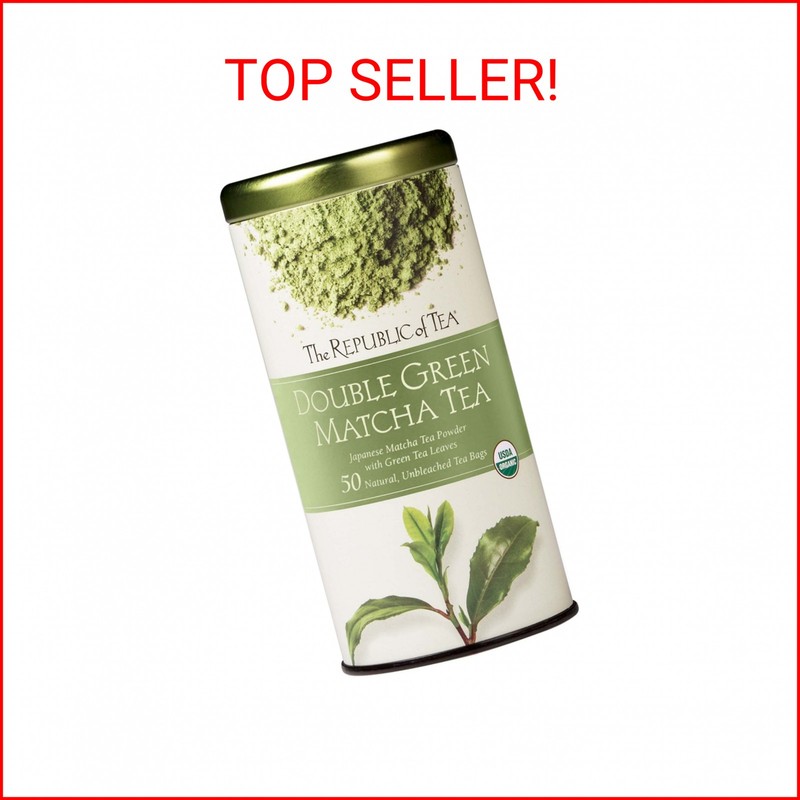 The Republic of Tea - Organic Double Green Matcha, Naturally Caffeinated Japanese Green Tea Powder and Leaves, Steeps 50 Cups