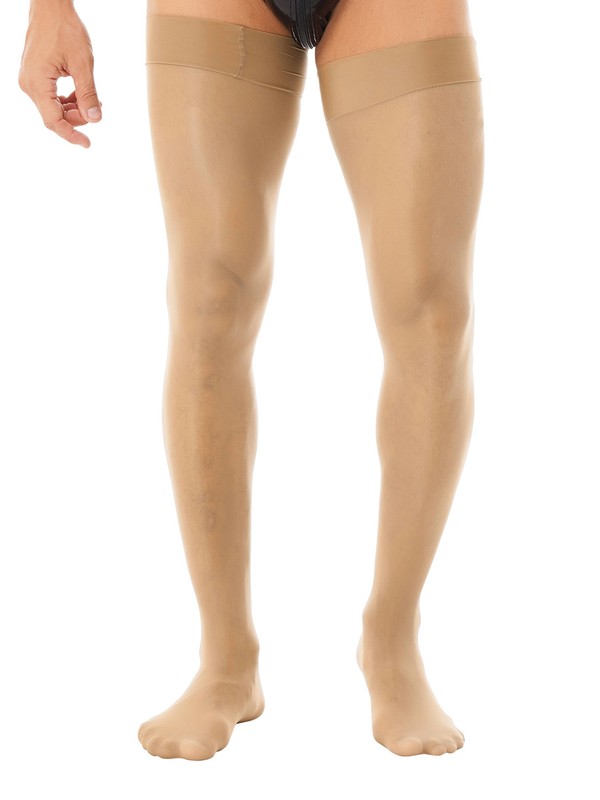 1 Pair Men Glossy Anti-skid Soft Sheer Compression Elasticity Thigh High Silk Long Stockings.