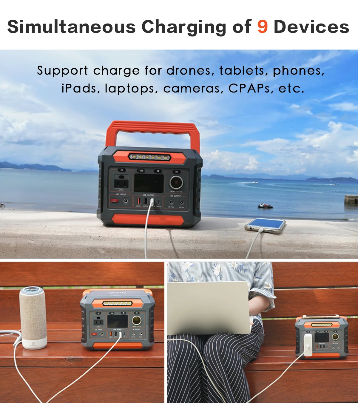 About this item: Clean and Unlimited Solar Energy: 100% green energy with smart MPPT controller for optimal charging efficiency. The power station can be fully charged with 2 100W solar panels (Should be bought separately) within 6 hrs or only 5.5 hrs via AC wall outlet charging. Ideal for your camping or family emergency storage. Easy to Use: The ergonomic shape of the handle grants an ease grip. And use in one touch with simple and speedy setup within 60s to enjoy outstanding charging efficiency. Safe & Reliable for Outdoor Camping: Features industry-leading cylindrical batteries (popular with manufacturers of Electric Vehicles) that meet UL safety standards. Certified with Impact-Resistance Class 9, passing the UL drop test (withstanding 3 drops from 0.9m height on any surface). The pure sine wave inverter delivers constant voltage that protects equipment from damage. Power Pretty Much Anything: Power 90% home appliances with 288Wh (300W AC output power) and 8 outlets (1*AC outlet, 2*USB-A , 1*USB-A quick charge 3.0, 1*USB-C PD, 1*DC input,1*DC 12V/10A output,1*24V/4A output). Ideal for outdoor off-grid activities and home backup power to power refrigerator, TV, mini cooler, electric grill, fan, and more for your outdoor and home needs.