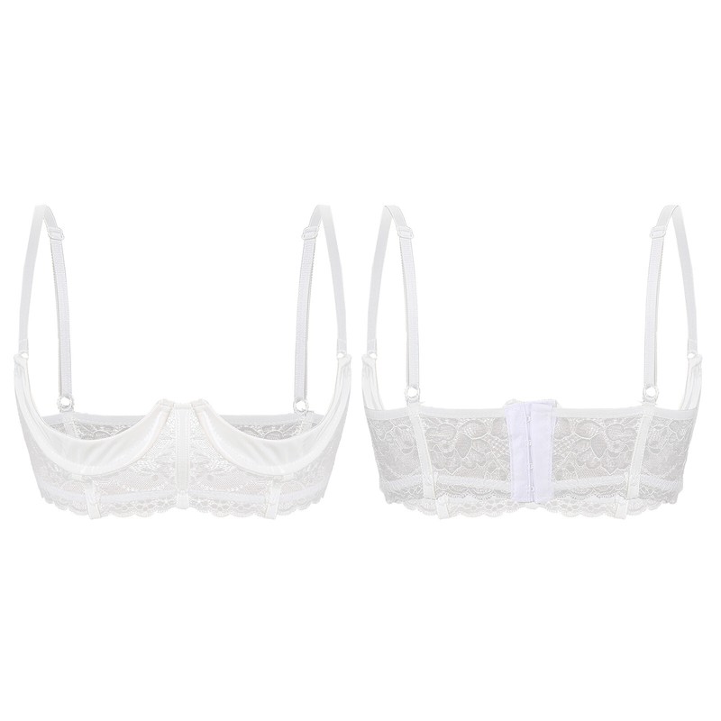 Sheer lace bra with floral pattern, 1/3 cup and underwire design highlights the shape of your bust.