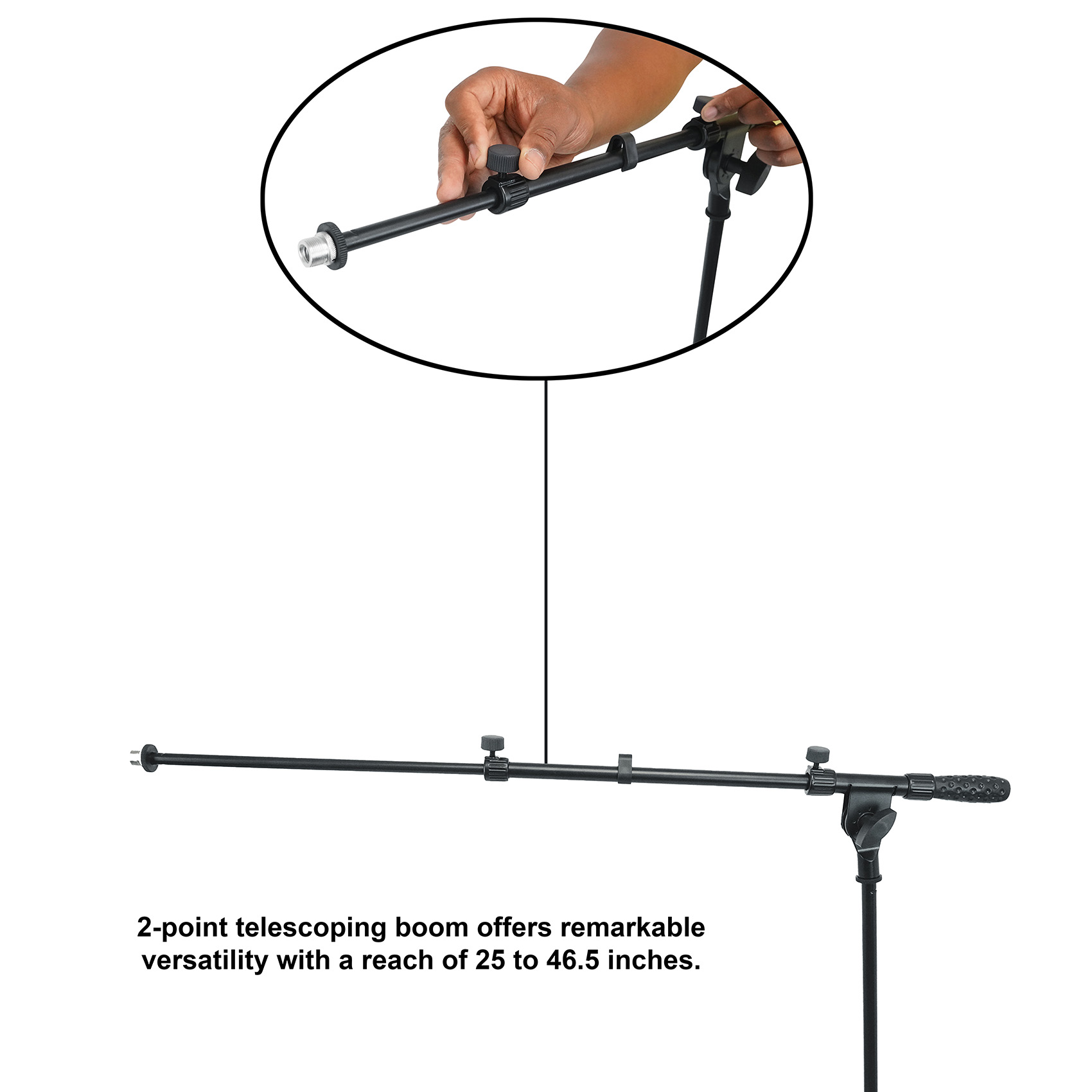 The RVMIC1 v2 distinguishes itself with a new telescopic boom that provides remarkable versatility allowing a boom adjustment from 25” to 46.5” inches.